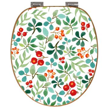 Mit dem banjado Toilettensitz in Bambus verbinden Sie Design und Funktionalität. Sie erhalten den WC-Sitz mit bewährter Holz Qualität und Universal Scharnieren. Das Motiv Motiv Beeren und Blätter besteht aus einer schutzlaminierten Motivfolie, die durch das Schutzlaminat zusätzlich vor Kratzern schützt. Durch diesen Motivdruck wird der WC-Sitz zu einem Blickfang in Ihrem Bad.