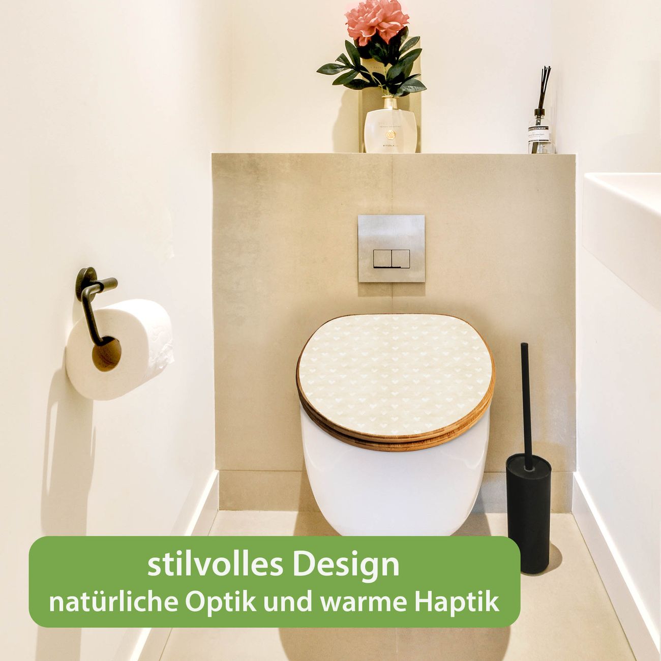 Design WC-Sitz Bambus Absenkautomatik Motiv Beige Herzen