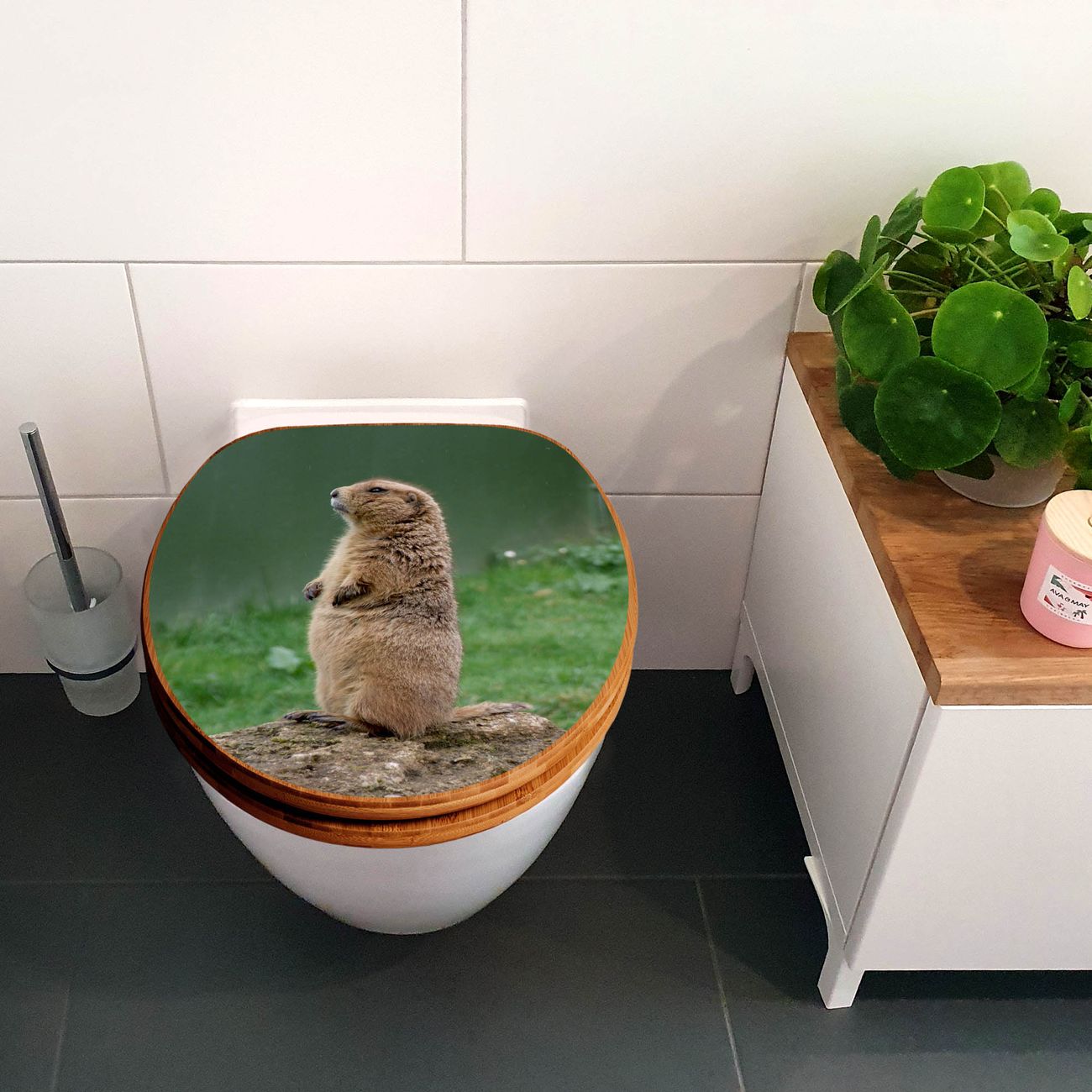 Mit dem banjado Toilettensitz in Bambus verbinden Sie Design und Funktionalität. Sie erhalten den WC-Sitz mit bewährter Holz Qualität und Universal Scharnieren. Das Motiv Motiv Biber besteht aus einer schutzlaminierten Motivfolie, die durch das Schutzlaminat zusätzlich vor Kratzern schützt. Durch diesen Motivdruck wird der WC-Sitz zu einem Blickfang in Ihrem Bad.