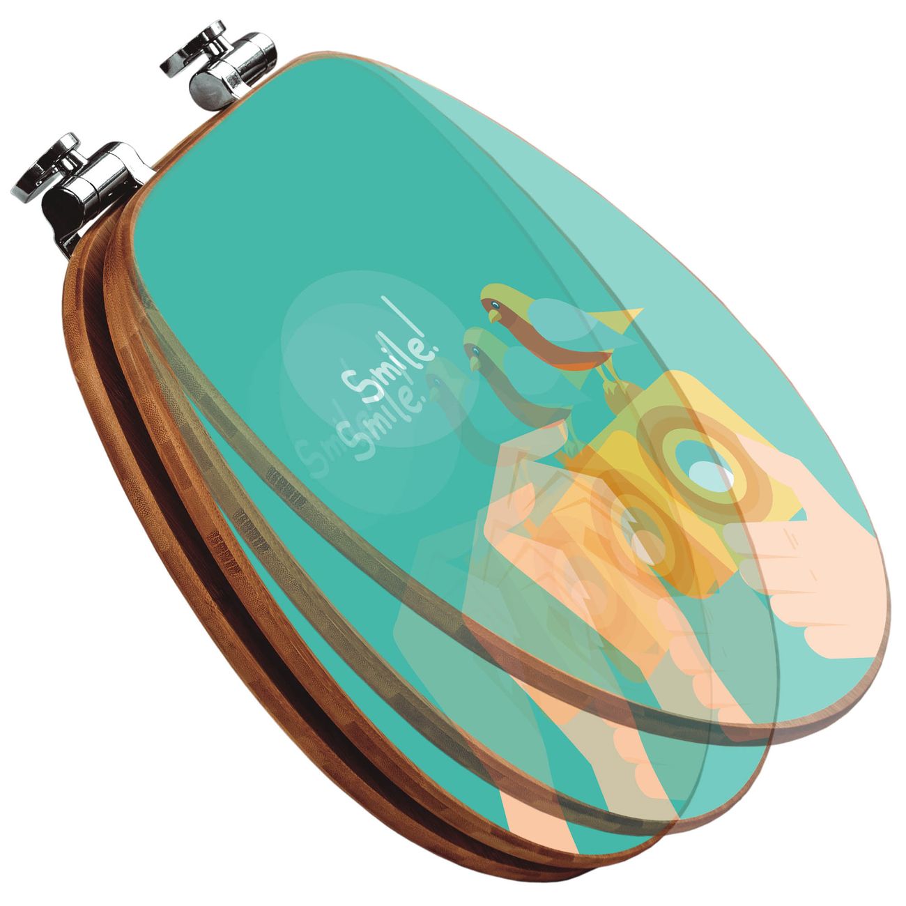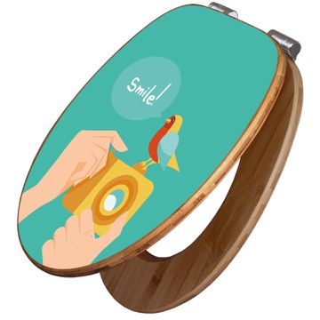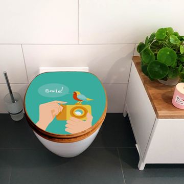 Mit dem banjado Toilettensitz in Bambus verbinden Sie Design und Funktionalität. Sie erhalten den WC-Sitz mit bewährter Holz Qualität und Universal Scharnieren. Das Motiv Motiv Bitte Lächeln 2 besteht aus einer schutzlaminierten Motivfolie, die durch das Schutzlaminat zusätzlich vor Kratzern schützt. Durch diesen Motivdruck wird der WC-Sitz zu einem Blickfang in Ihrem Bad.