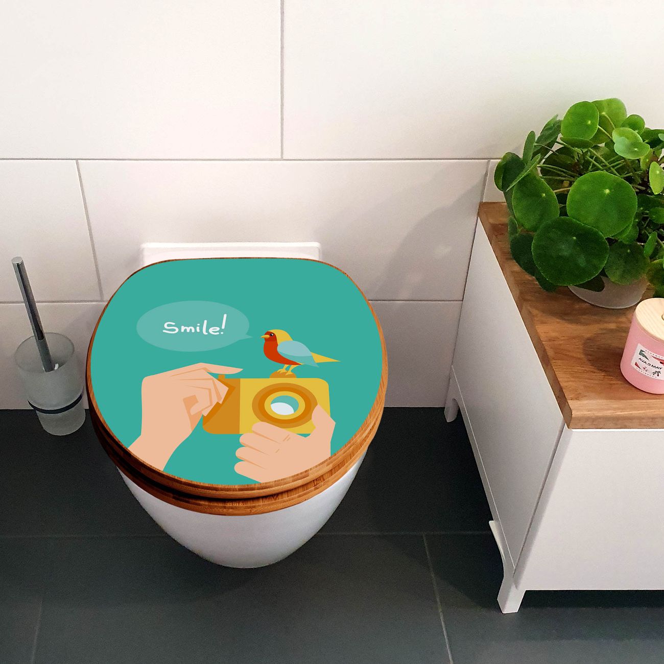 Design WC-Sitz Bambus Absenkautomatik Motiv Bitte Lächeln 2