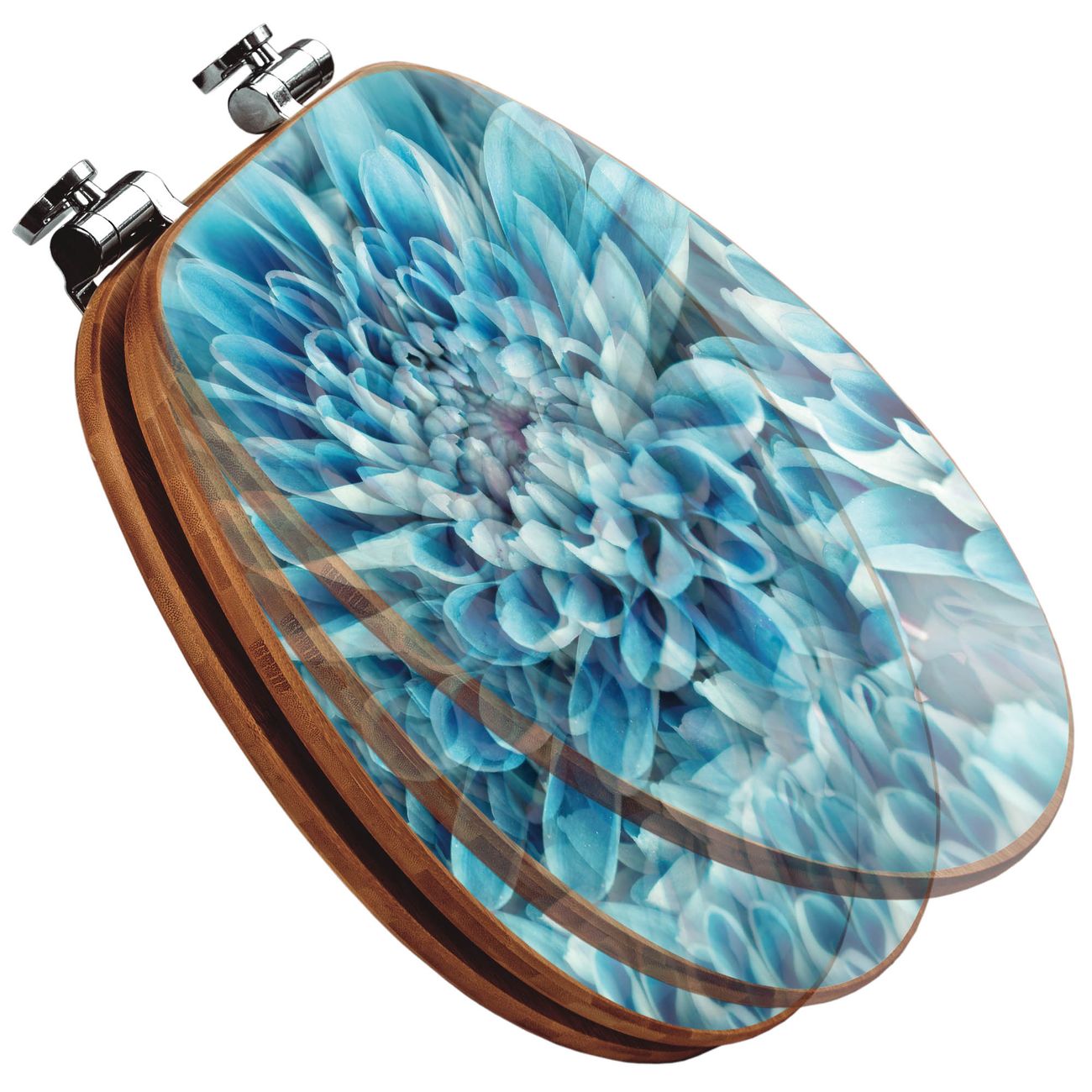 Design WC-Sitz Bambus Absenkautomatik Motiv Blaue Blüten