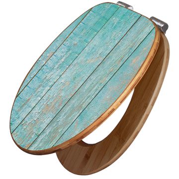 Design WC-Sitz Bambus Absenkautomatik Motiv Blaue Planken