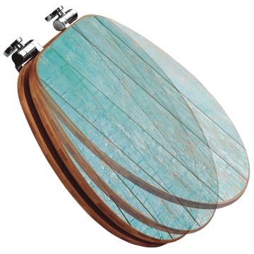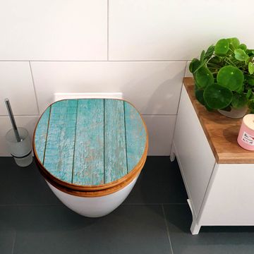 Mit dem banjado Toilettensitz in Bambus verbinden Sie Design und Funktionalität. Sie erhalten den WC-Sitz mit bewährter Holz Qualität und Universal Scharnieren. Das Motiv Motiv Blaue Planken besteht aus einer schutzlaminierten Motivfolie, die durch das Schutzlaminat zusätzlich vor Kratzern schützt. Durch diesen Motivdruck wird der WC-Sitz zu einem Blickfang in Ihrem Bad.