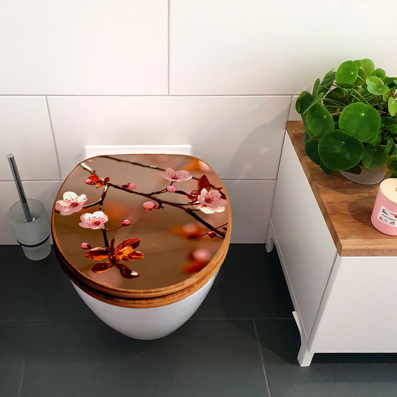 Design WC-Sitz Bambus Absenkautomatik Motiv Blühender Kirschzweig