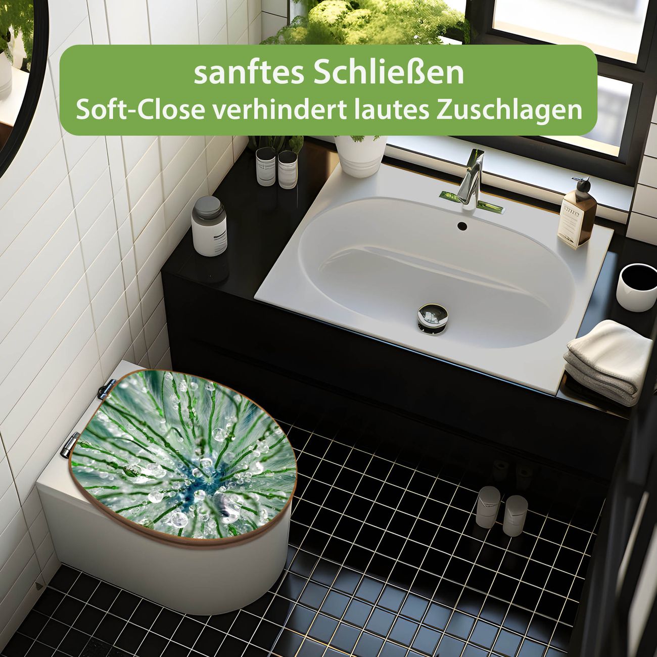 Design WC-Sitz Bambus Absenkautomatik Motiv Blüte Mit Tautropfen