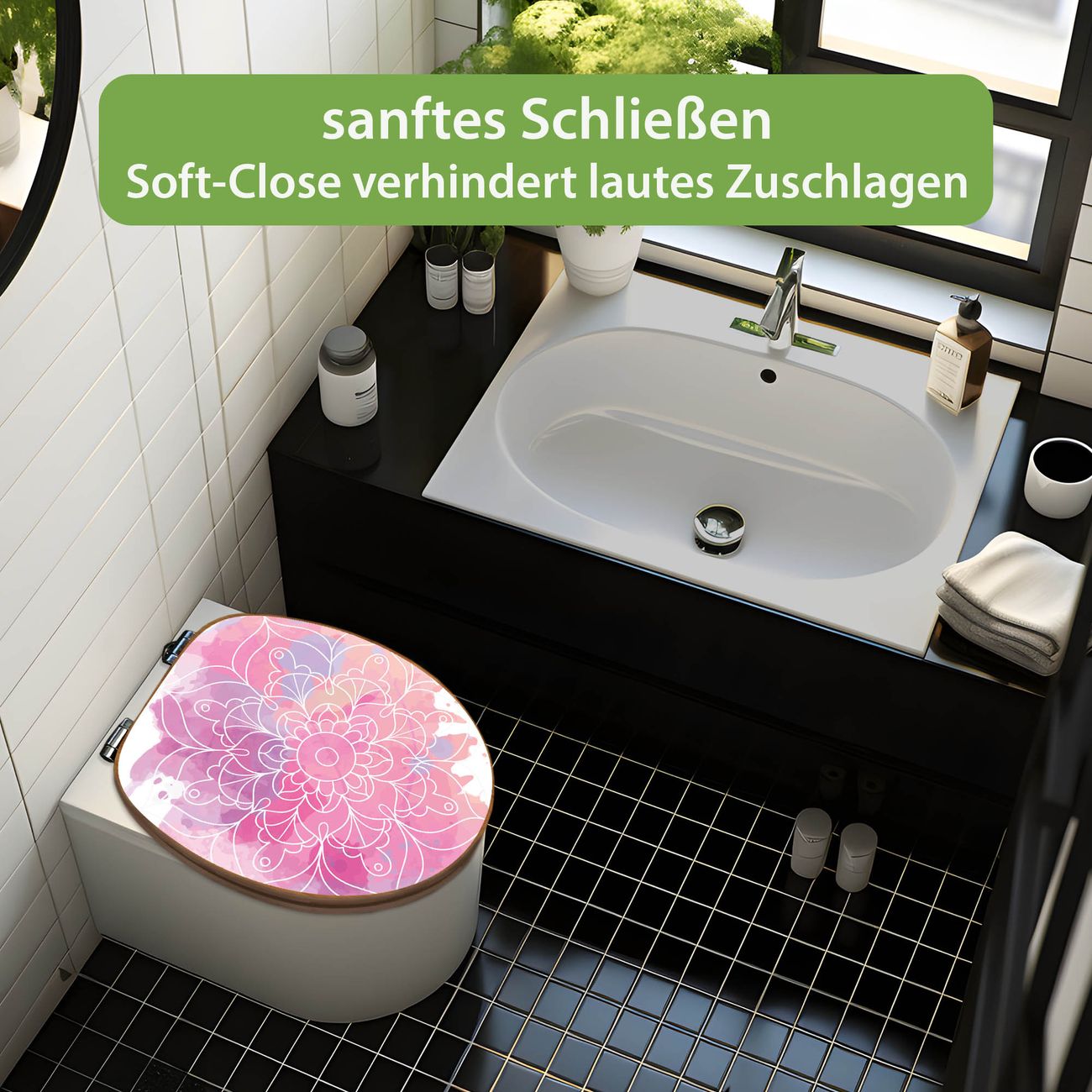 Design WC-Sitz Bambus Absenkautomatik Motiv Blumenmandala