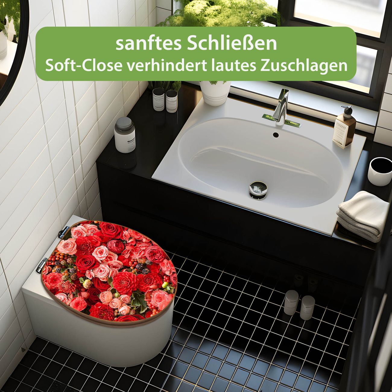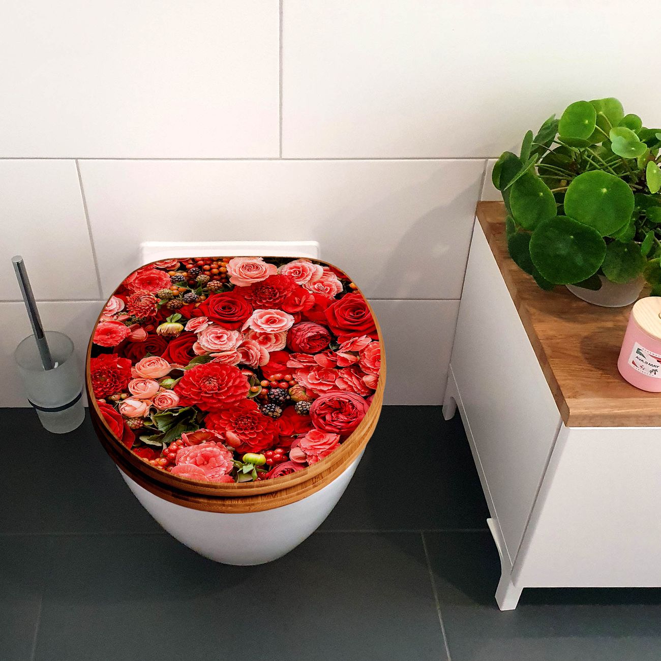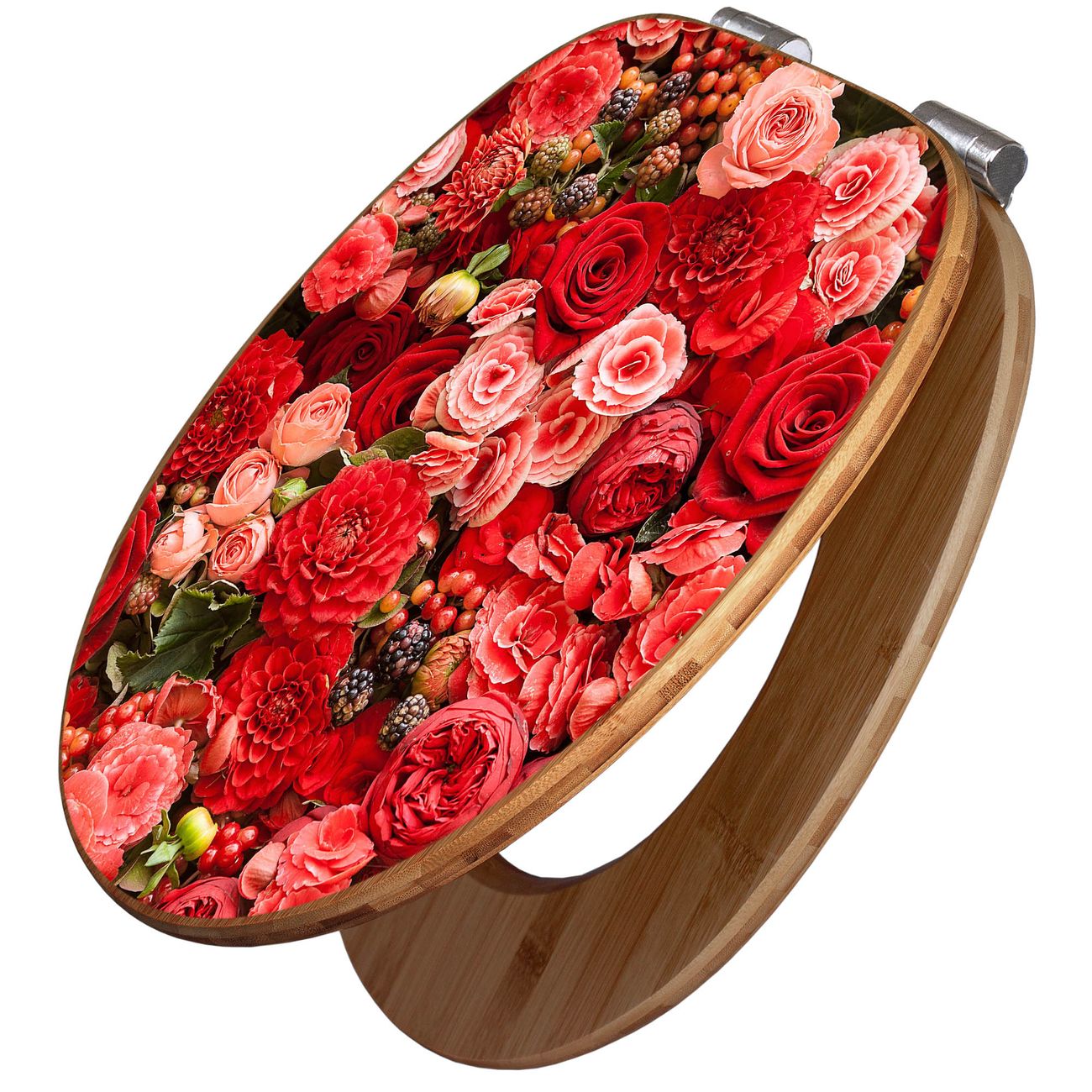 Design WC-Sitz Bambus Absenkautomatik Motiv Bouquet in Rot