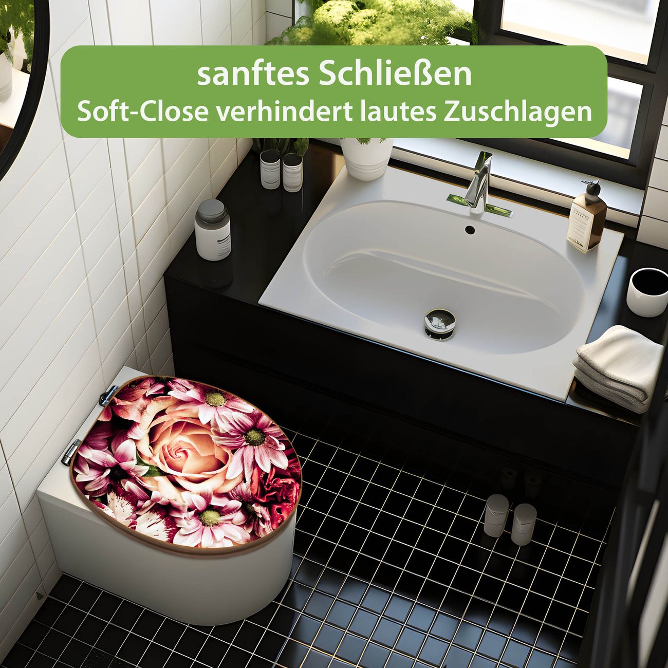 Design WC-Sitz Bambus Absenkautomatik Motiv Brautstrauss