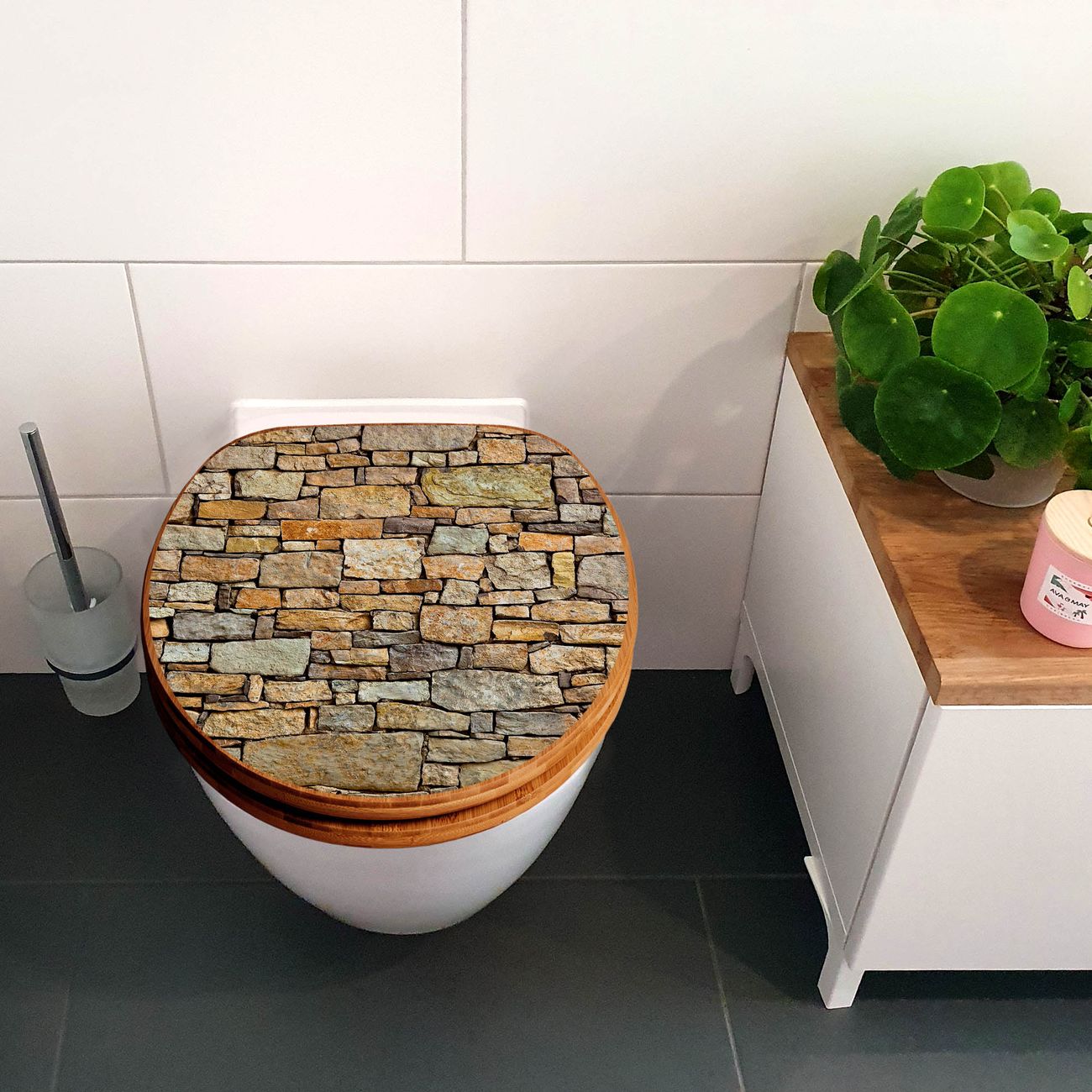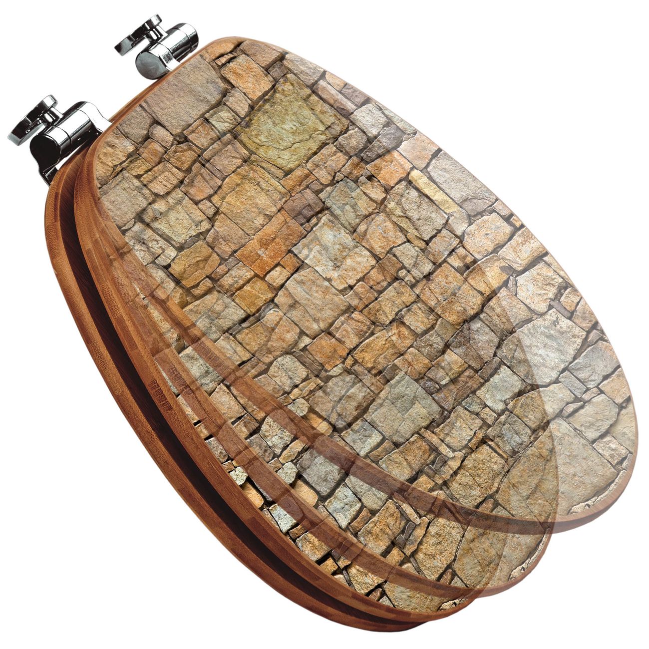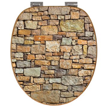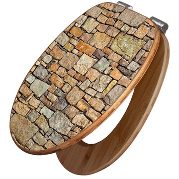 Design WC-Sitz Bambus Absenkautomatik Motiv Bruchsteinmauer