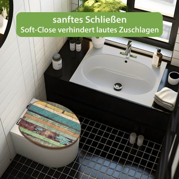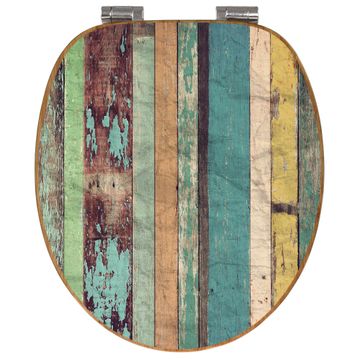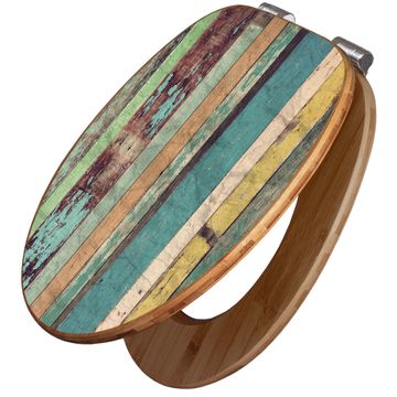 Design WC-Sitz Bambus Absenkautomatik Motiv Bunte Bretterwand