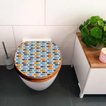 Mit dem banjado Toilettensitz in Bambus verbinden Sie Design und Funktionalität. Sie erhalten den WC-Sitz mit bewährter Holz Qualität und Universal Scharnieren. Das Motiv Motiv Bunte Fische besteht aus einer schutzlaminierten Motivfolie, die durch das Schutzlaminat zusätzlich vor Kratzern schützt. Durch diesen Motivdruck wird der WC-Sitz zu einem Blickfang in Ihrem Bad.