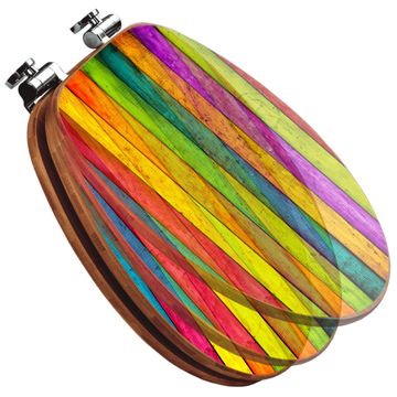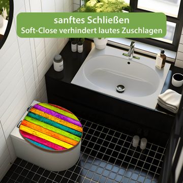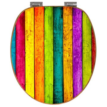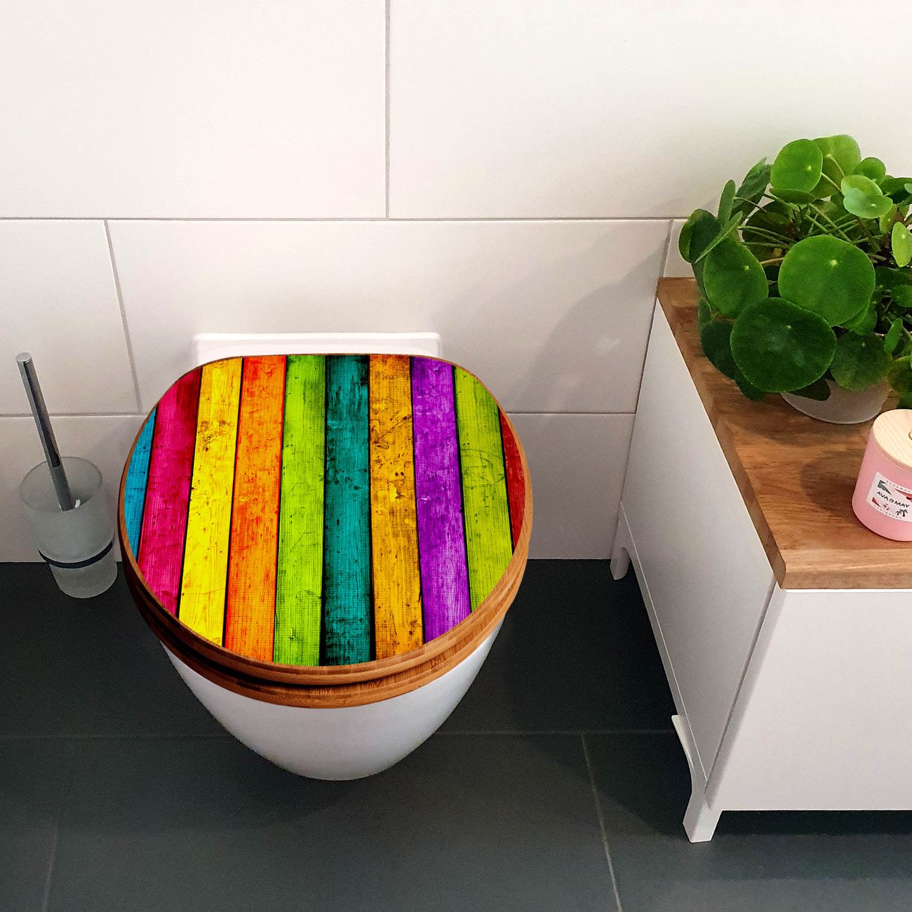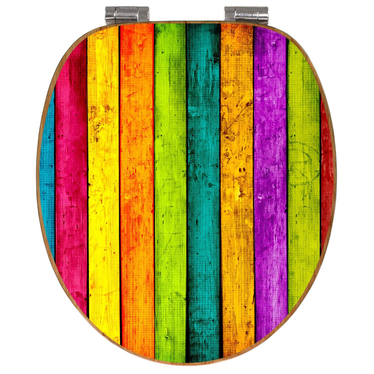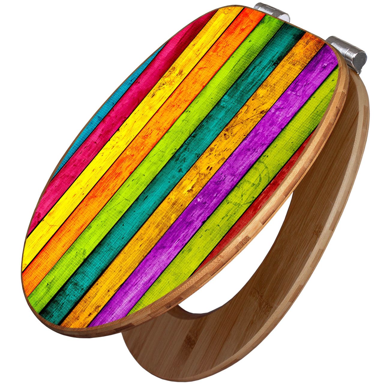 Design WC-Sitz Bambus Absenkautomatik Motiv Bunte Holzlatten