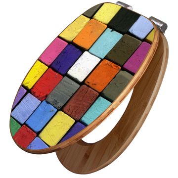 Design WC-Sitz Bambus Absenkautomatik Motiv Bunte Kreide