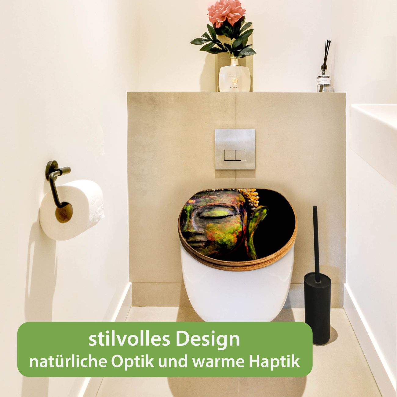 Design WC-Sitz Bambus Absenkautomatik Motiv Bunter Buddha