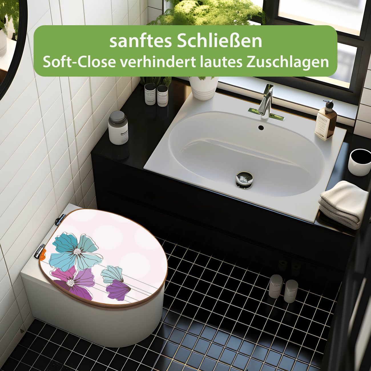 Design WC-Sitz Bambus Absenkautomatik Motiv Bunter Mohn