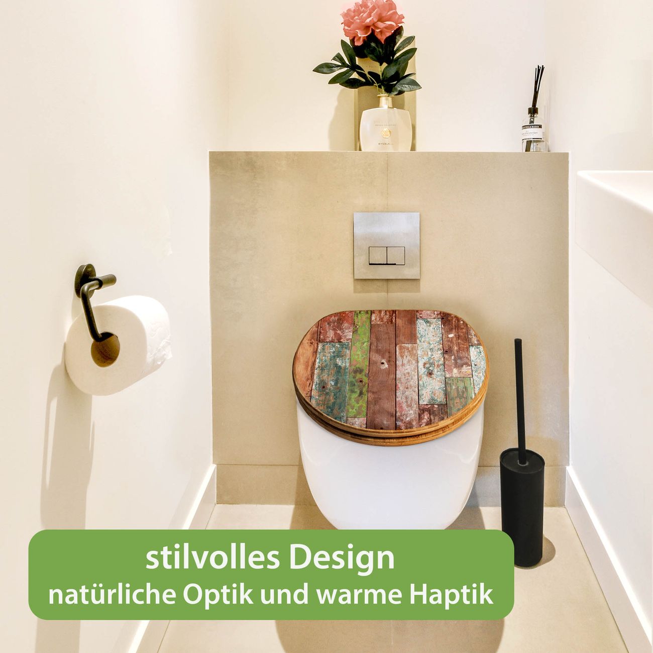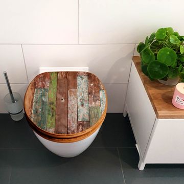 Mit dem banjado Toilettensitz in Bambus verbinden Sie Design und Funktionalität. Sie erhalten den WC-Sitz mit bewährter Holz Qualität und Universal Scharnieren. Das Motiv Motiv Buntes Holz besteht aus einer schutzlaminierten Motivfolie, die durch das Schutzlaminat zusätzlich vor Kratzern schützt. Durch diesen Motivdruck wird der WC-Sitz zu einem Blickfang in Ihrem Bad.