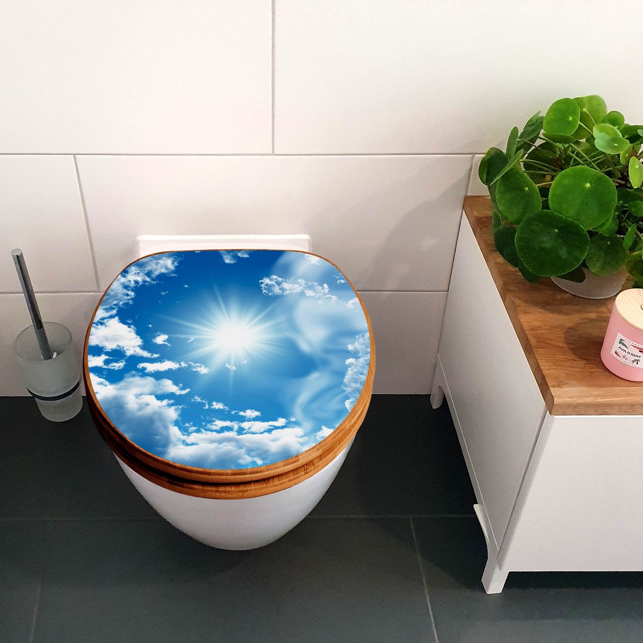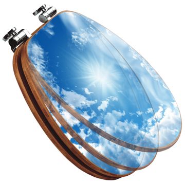 Mit dem banjado Toilettensitz in Bambus verbinden Sie Design und Funktionalität. Sie erhalten den WC-Sitz mit bewährter Holz Qualität und Universal Scharnieren. Das Motiv Motiv Clouds besteht aus einer schutzlaminierten Motivfolie, die durch das Schutzlaminat zusätzlich vor Kratzern schützt. Durch diesen Motivdruck wird der WC-Sitz zu einem Blickfang in Ihrem Bad.