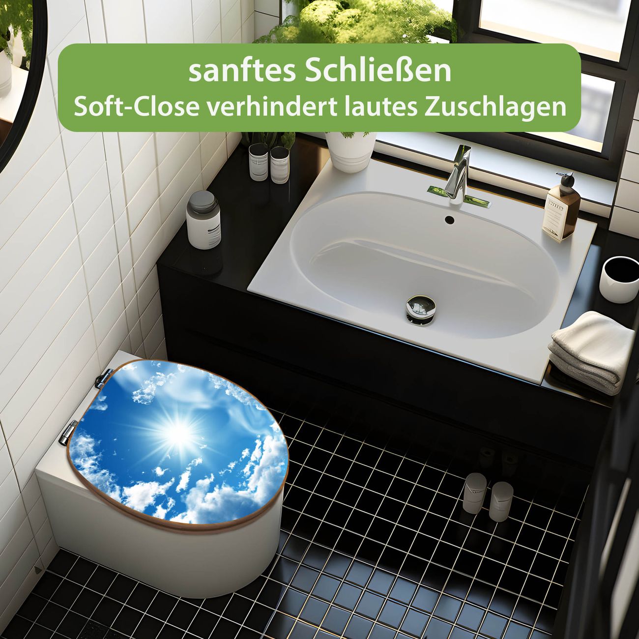 Design WC-Sitz Bambus Absenkautomatik Motiv Clouds