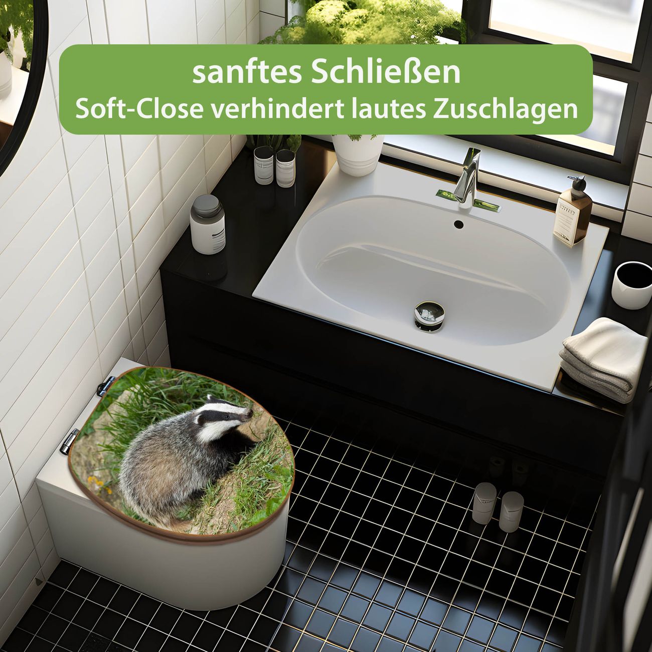Design WC-Sitz Bambus Absenkautomatik Motiv Dachs