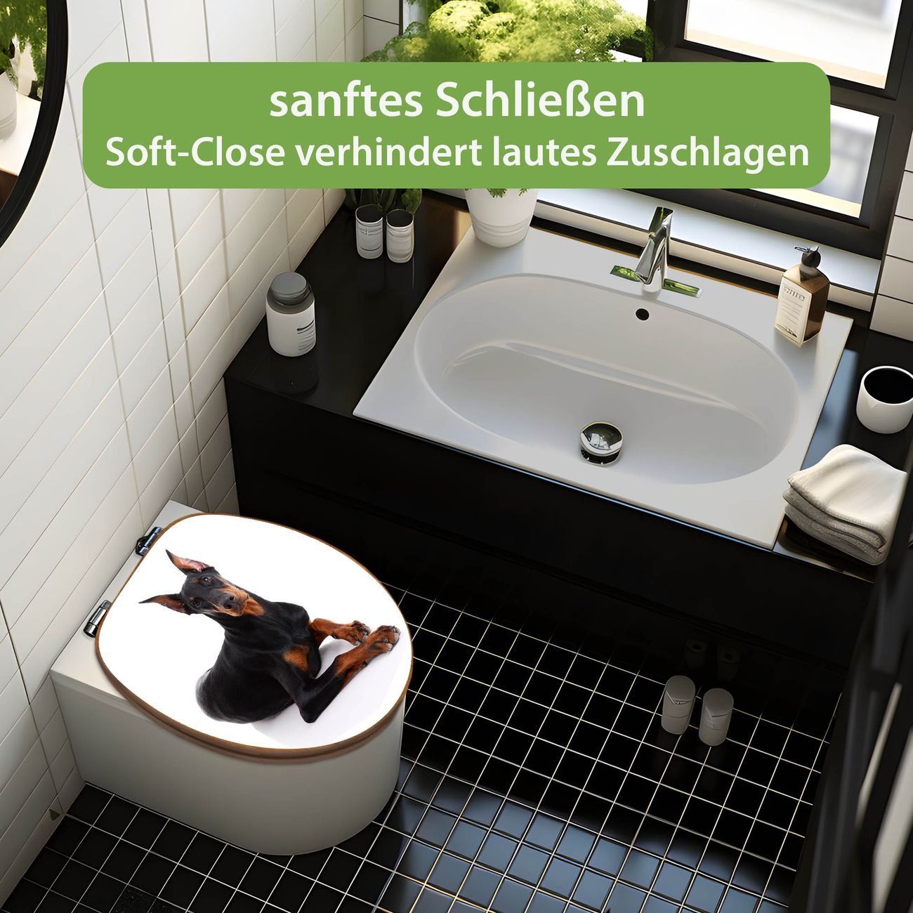 Design WC-Sitz Bambus Absenkautomatik Motiv Dobermann