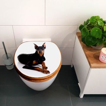 Mit dem banjado Toilettensitz in Bambus verbinden Sie Design und Funktionalität. Sie erhalten den WC-Sitz mit bewährter Holz Qualität und Universal Scharnieren. Das Motiv Motiv Dobermann besteht aus einer schutzlaminierten Motivfolie, die durch das Schutzlaminat zusätzlich vor Kratzern schützt. Durch diesen Motivdruck wird der WC-Sitz zu einem Blickfang in Ihrem Bad.
