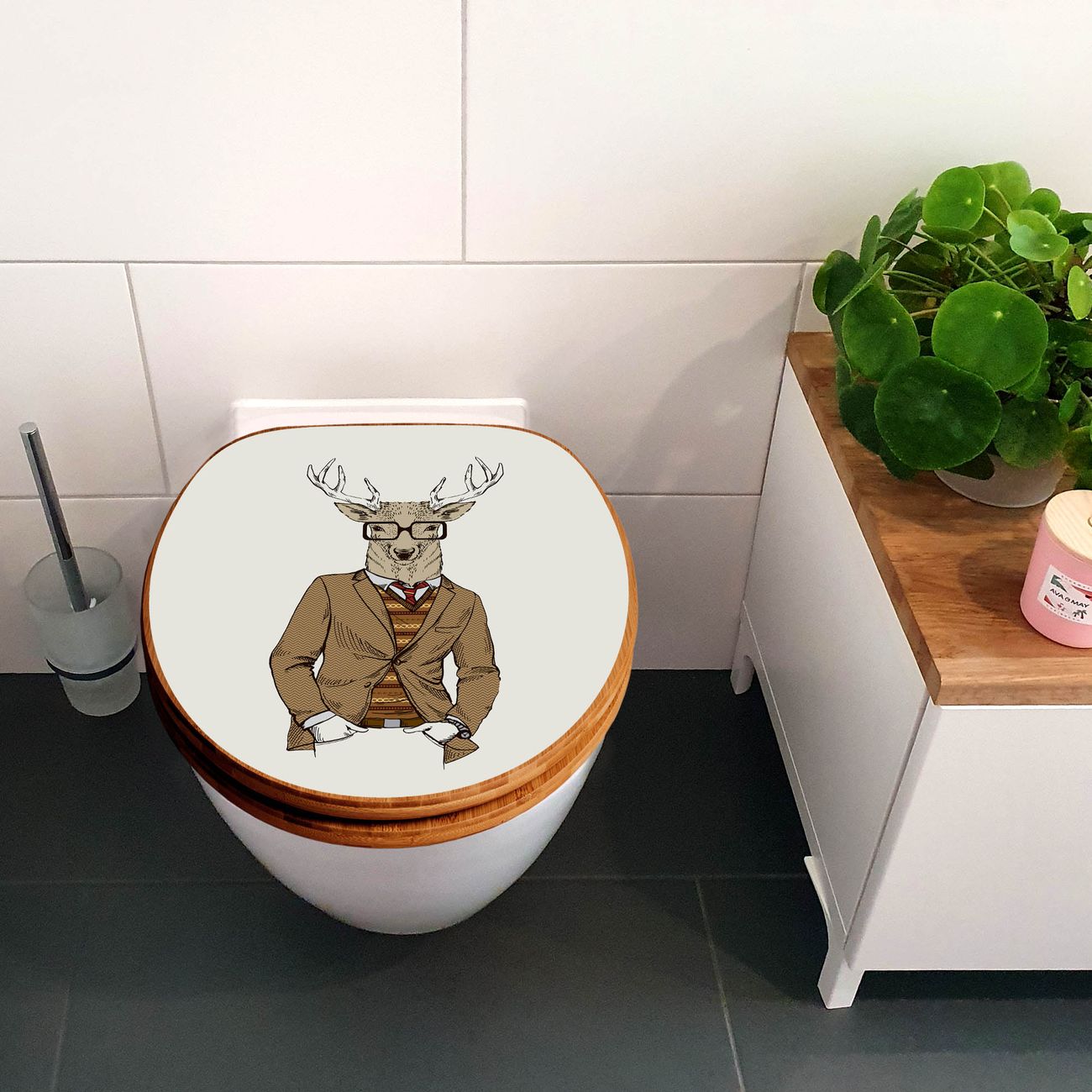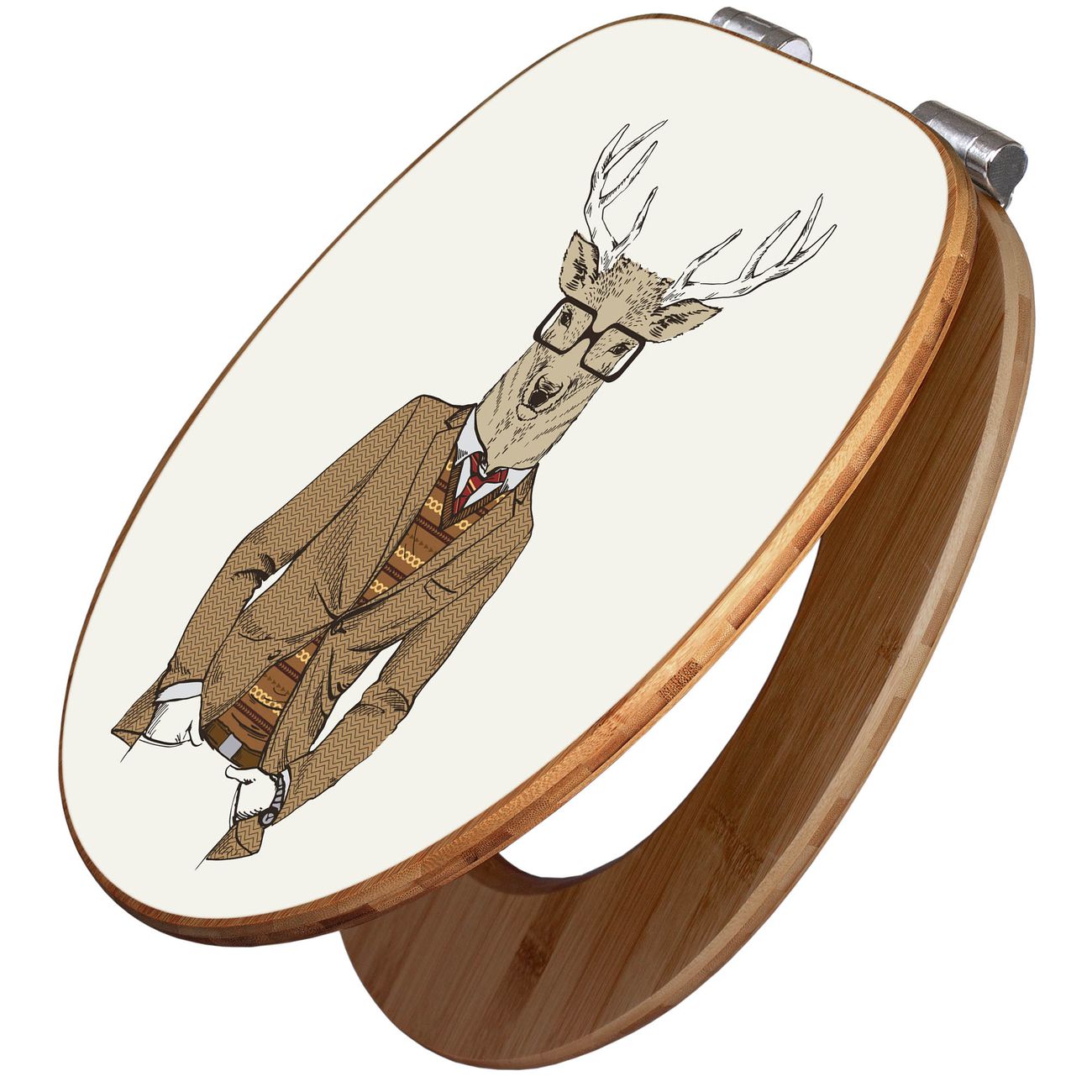 Mit dem banjado Toilettensitz in Bambus verbinden Sie Design und Funktionalität. Sie erhalten den WC-Sitz mit bewährter Holz Qualität und Universal Scharnieren. Das Motiv Motiv Doktor Hirsch besteht aus einer schutzlaminierten Motivfolie, die durch das Schutzlaminat zusätzlich vor Kratzern schützt. Durch diesen Motivdruck wird der WC-Sitz zu einem Blickfang in Ihrem Bad.