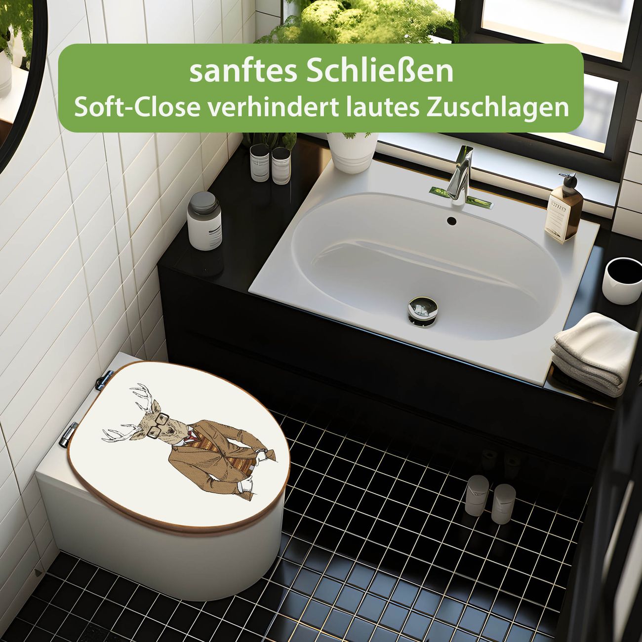 Design WC-Sitz Bambus Absenkautomatik Motiv Doktor Hirsch