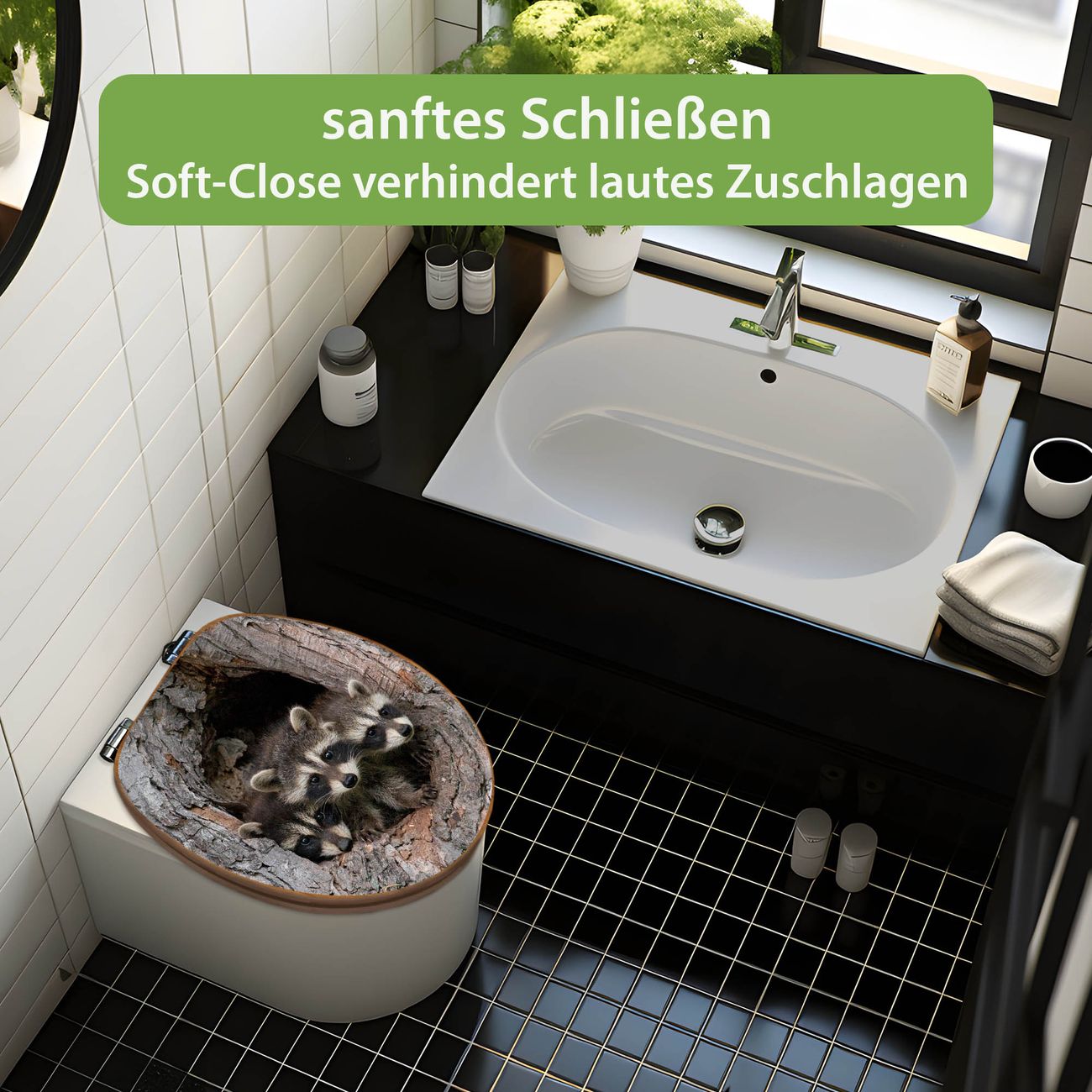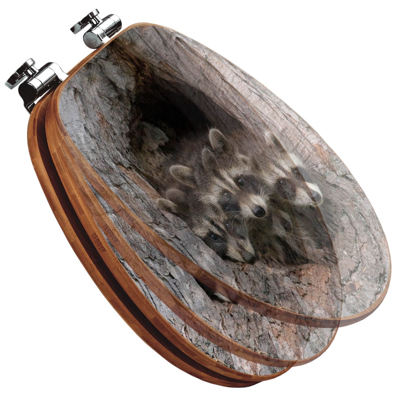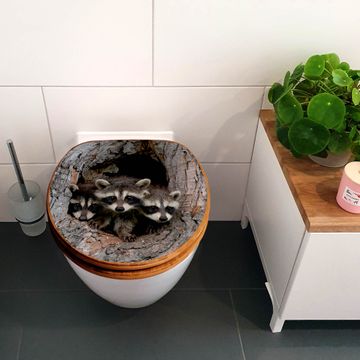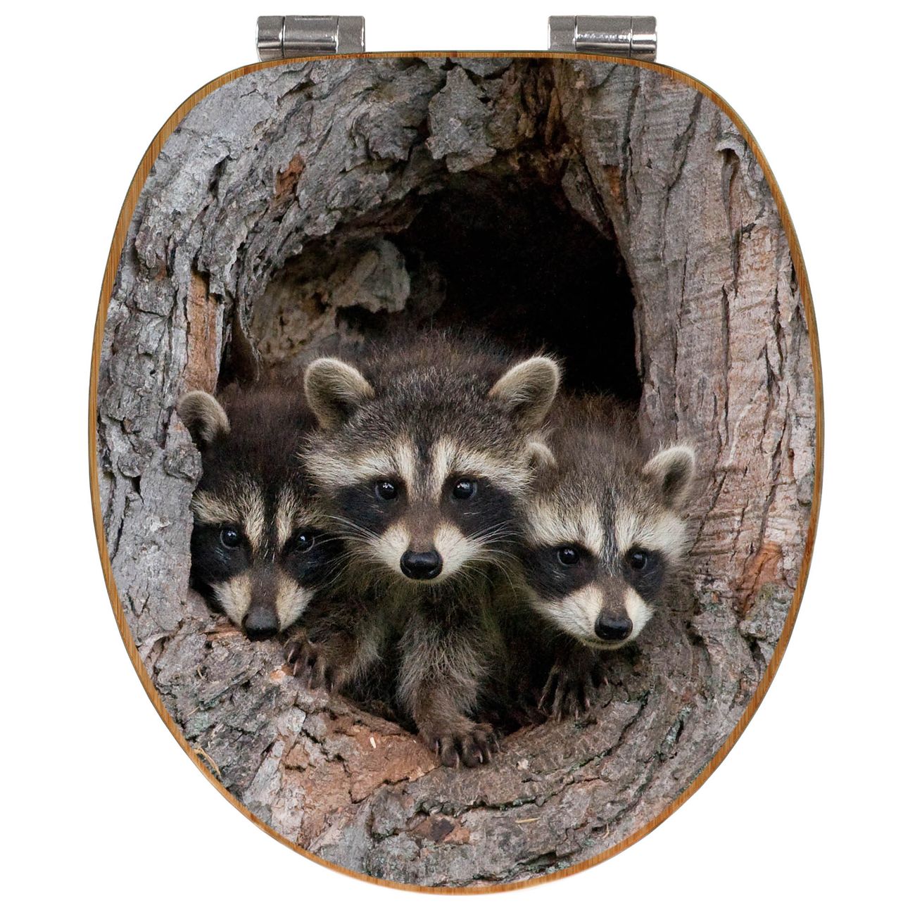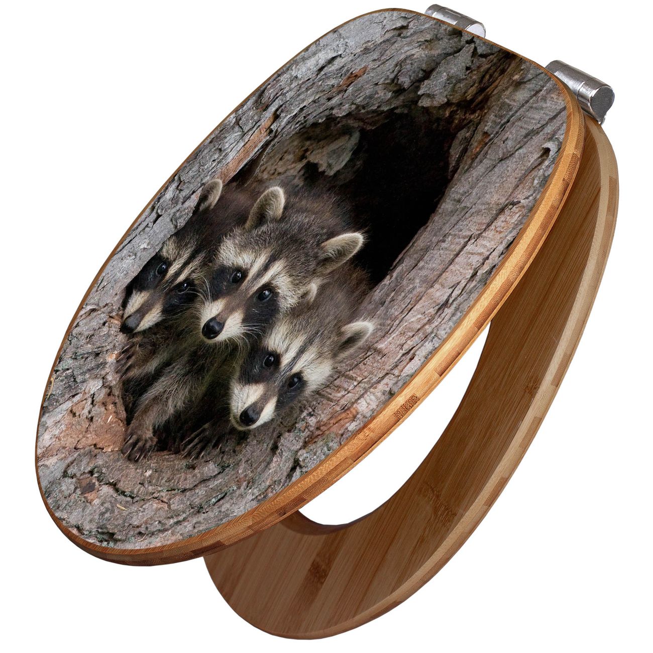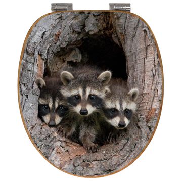 Design WC-Sitz Bambus Absenkautomatik Motiv Drei Waschbären