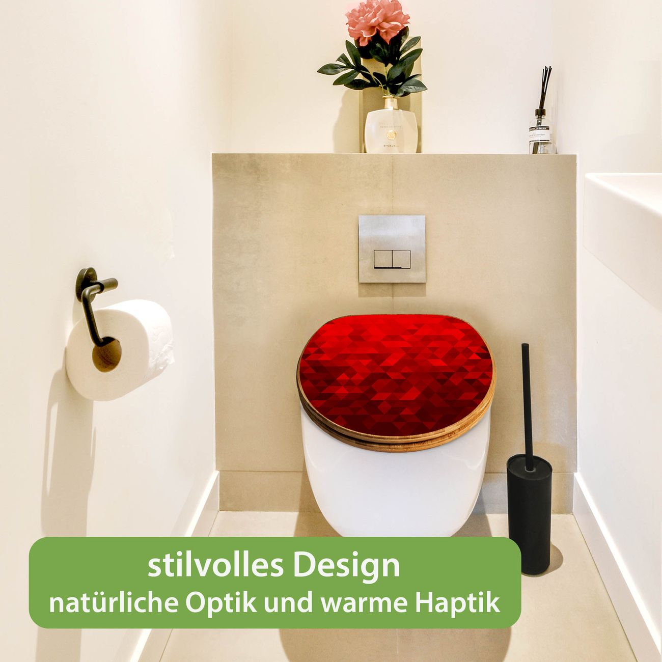 Design WC-Sitz Bambus Absenkautomatik Motiv Dreiecke Rot
