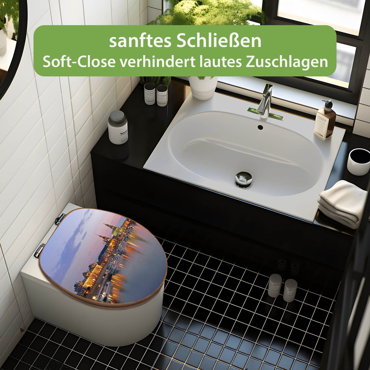 Design WC-Sitz Bambus Absenkautomatik Motiv Dresden