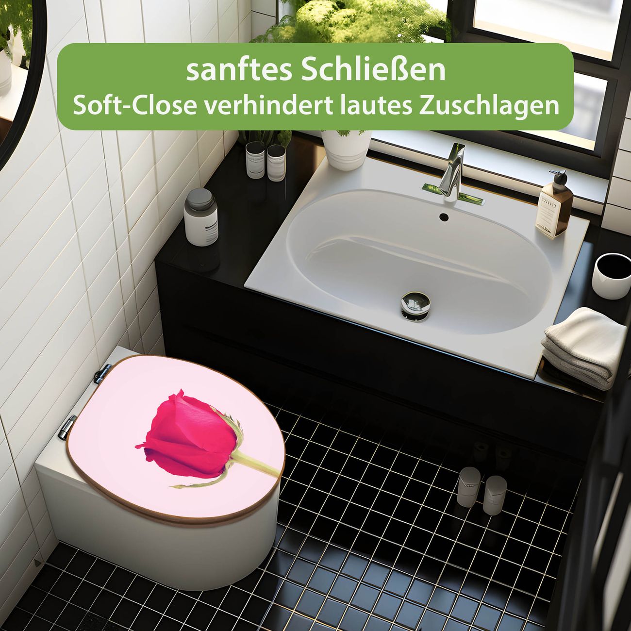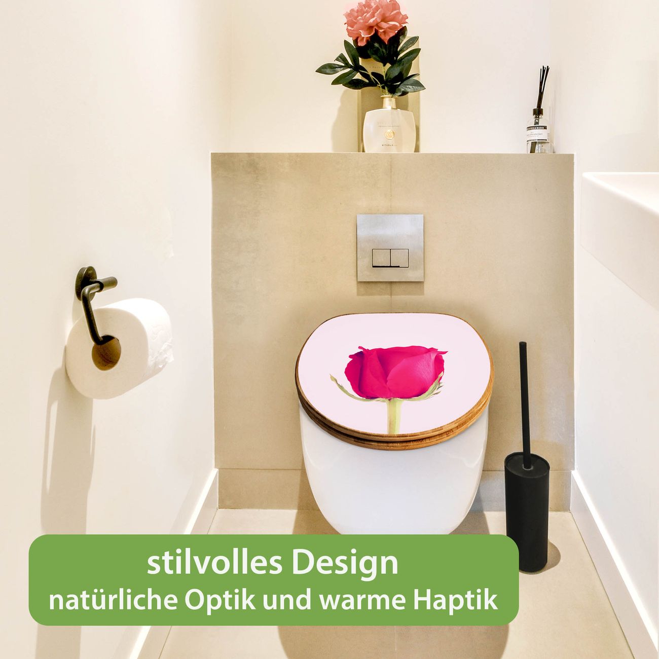 Design WC-Sitz Bambus Absenkautomatik Motiv Einzelne Rose