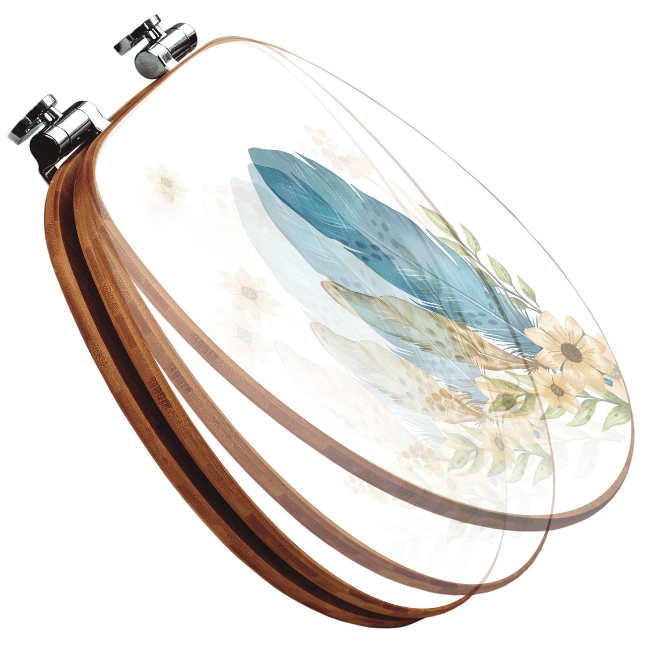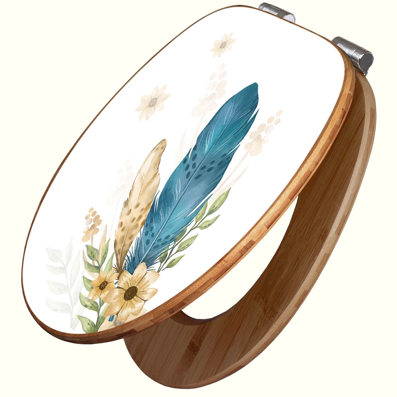 Design WC-Sitz Bambus Absenkautomatik Motiv Federn und Blüten Boho