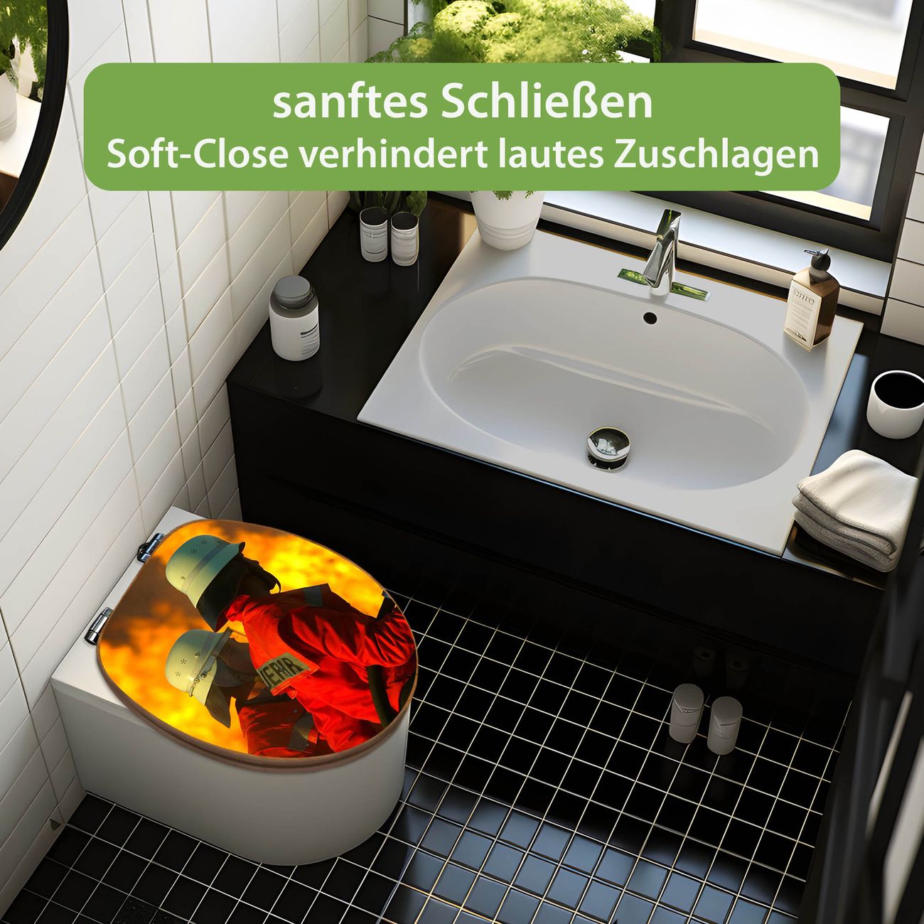 Design WC-Sitz Bambus Absenkautomatik Motiv Feuer