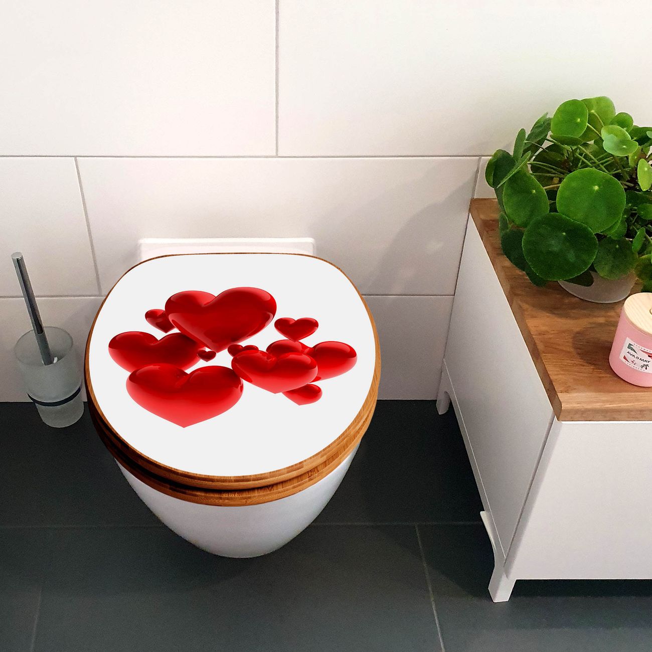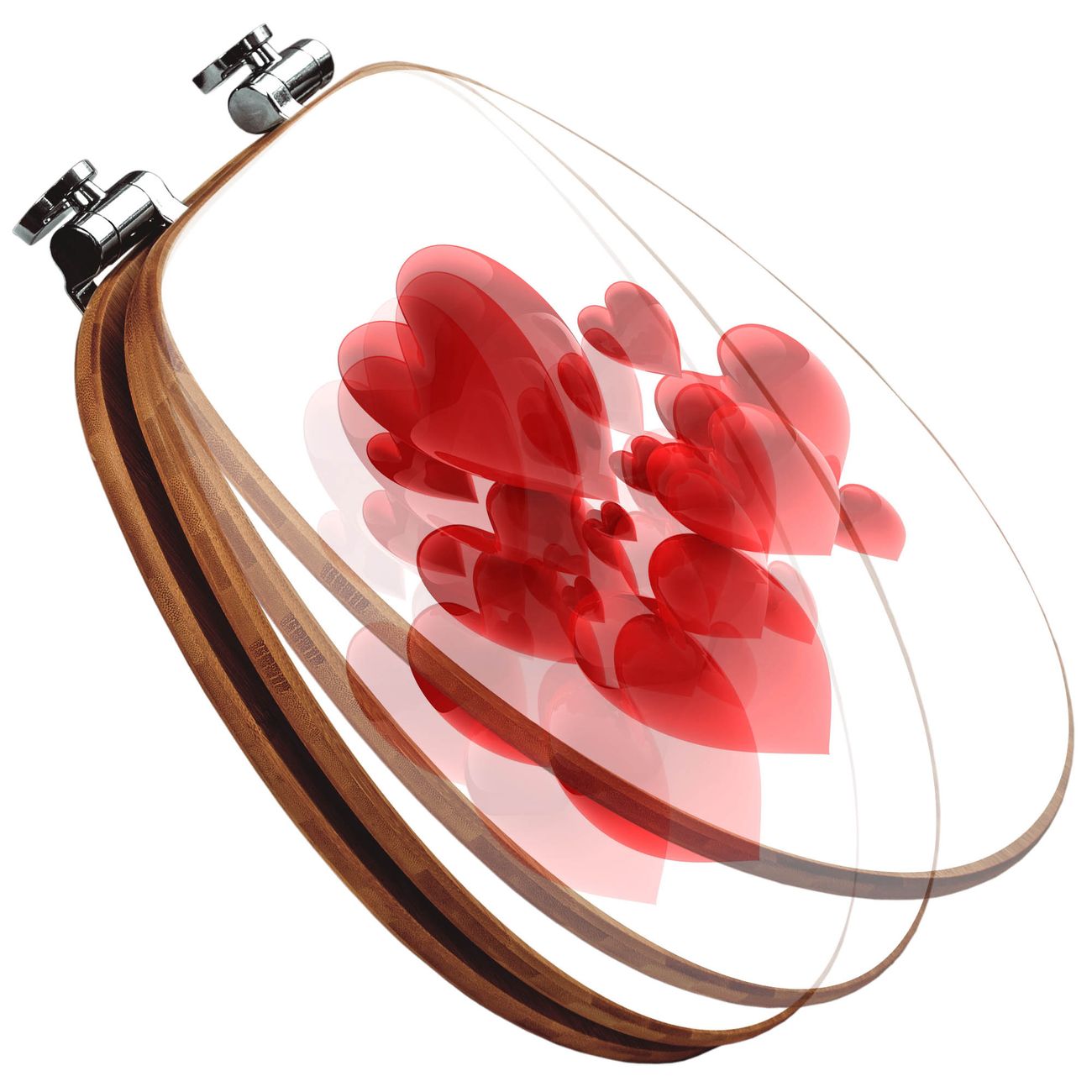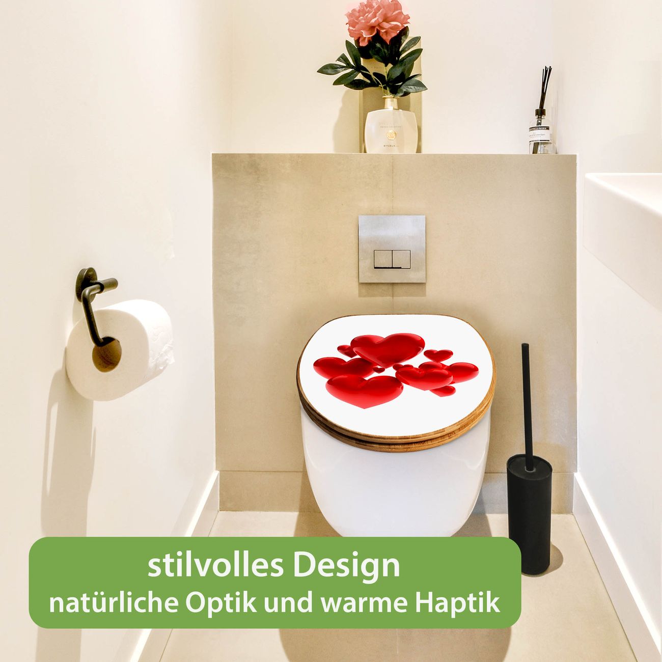 Design WC-Sitz Bambus Absenkautomatik Motiv Fliegende Herzen