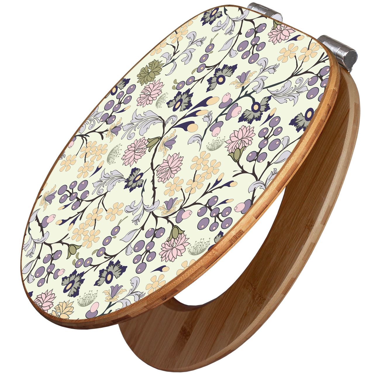 Mit dem banjado Toilettensitz in Bambus verbinden Sie Design und Funktionalität. Sie erhalten den WC-Sitz mit bewährter Holz Qualität und Universal Scharnieren. Das Motiv Motiv Florale Tapete besteht aus einer schutzlaminierten Motivfolie, die durch das Schutzlaminat zusätzlich vor Kratzern schützt. Durch diesen Motivdruck wird der WC-Sitz zu einem Blickfang in Ihrem Bad.