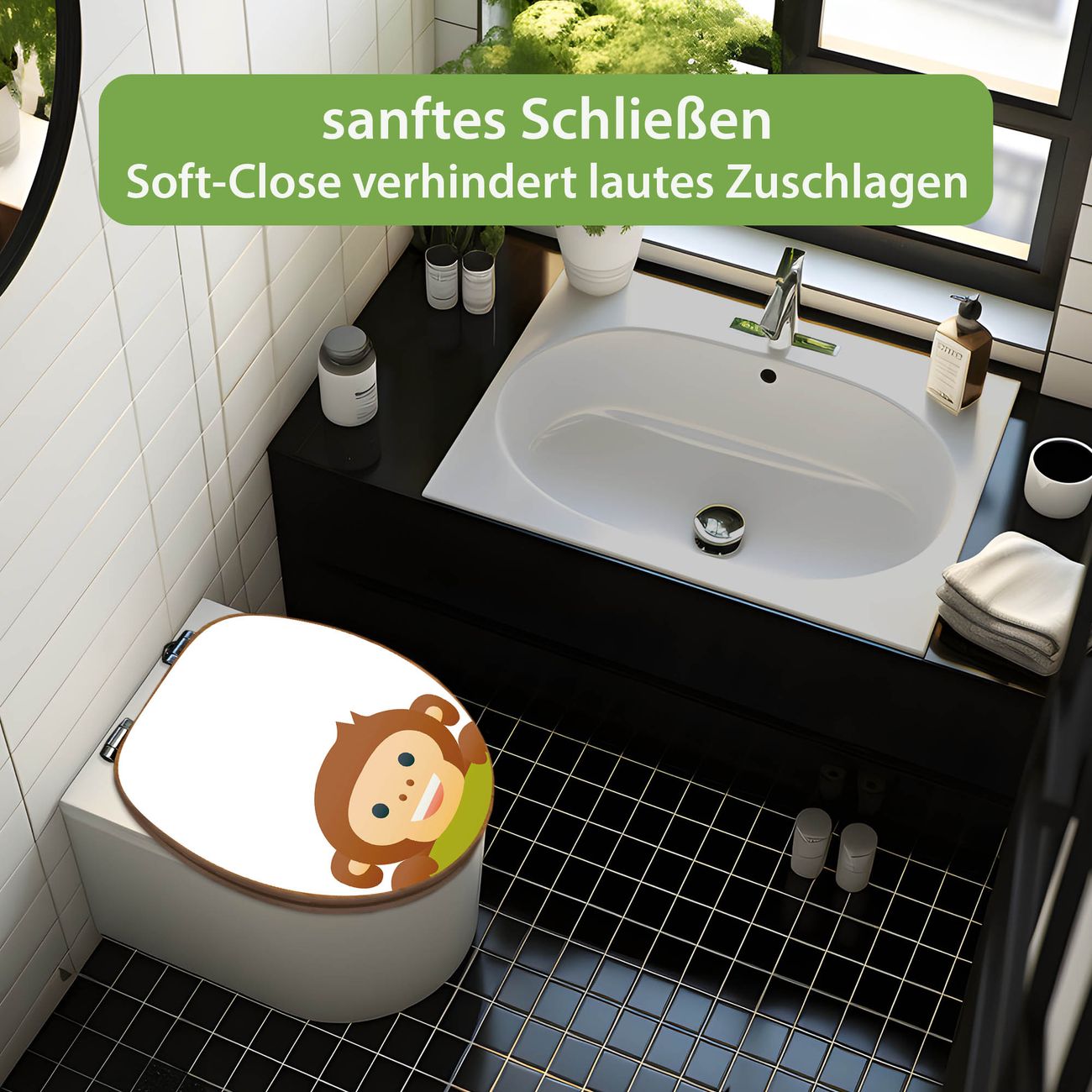Design WC-Sitz Bambus Absenkautomatik Motiv Fröhlicher Affe