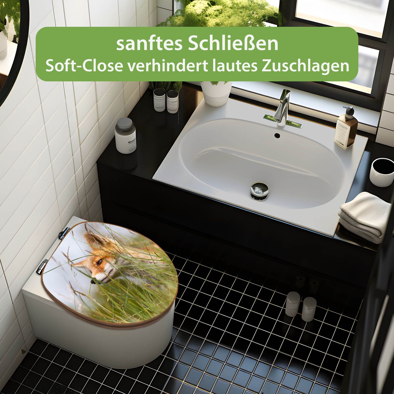 Design WC-Sitz Bambus Absenkautomatik Motiv Fuchs