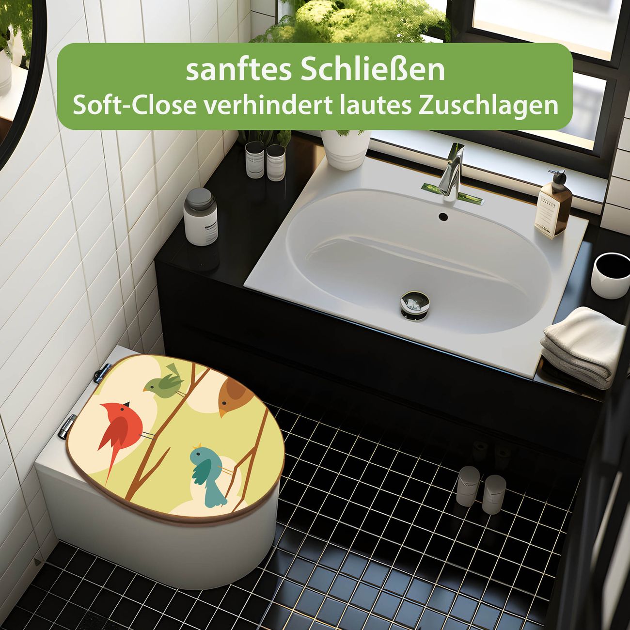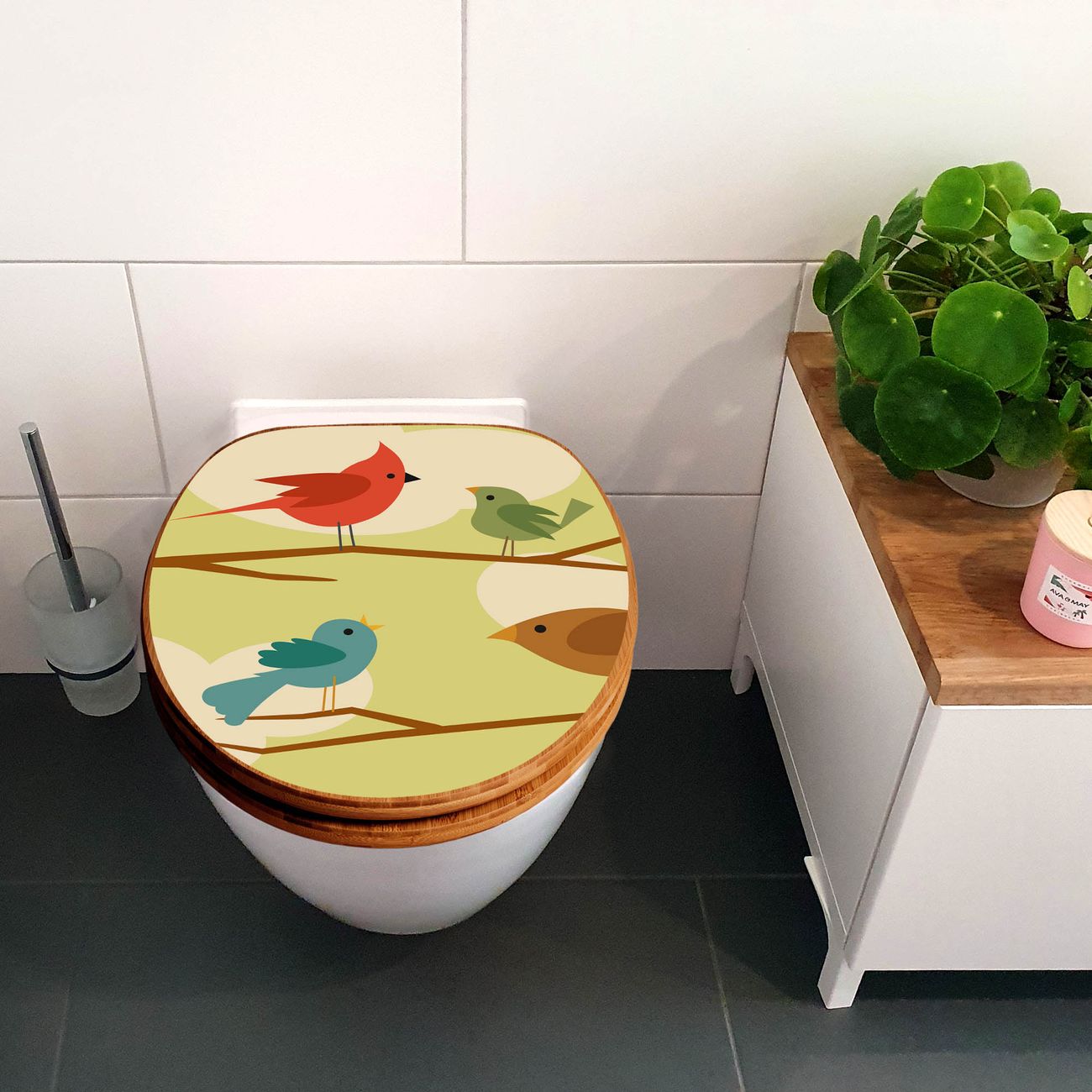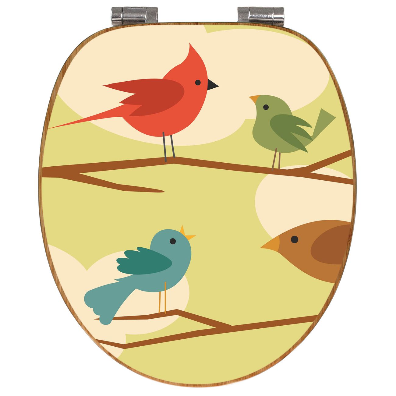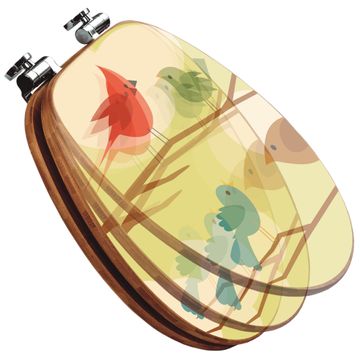 Design WC-Sitz Bambus Absenkautomatik Motiv Fünf Vögel
