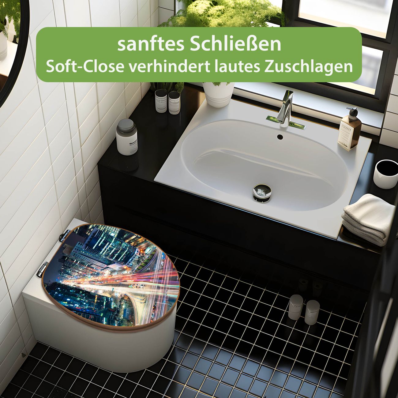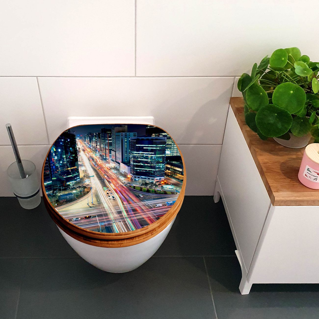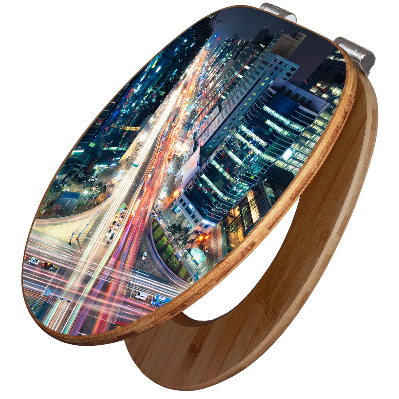 Design WC-Sitz Bambus Absenkautomatik Motiv Gangnam Bei Nacht