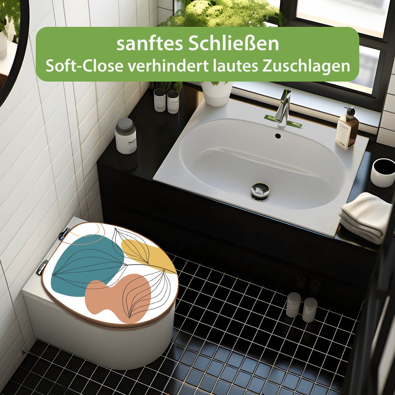 Design WC-Sitz Bambus Absenkautomatik Motiv Geometrische Blätter Lineart