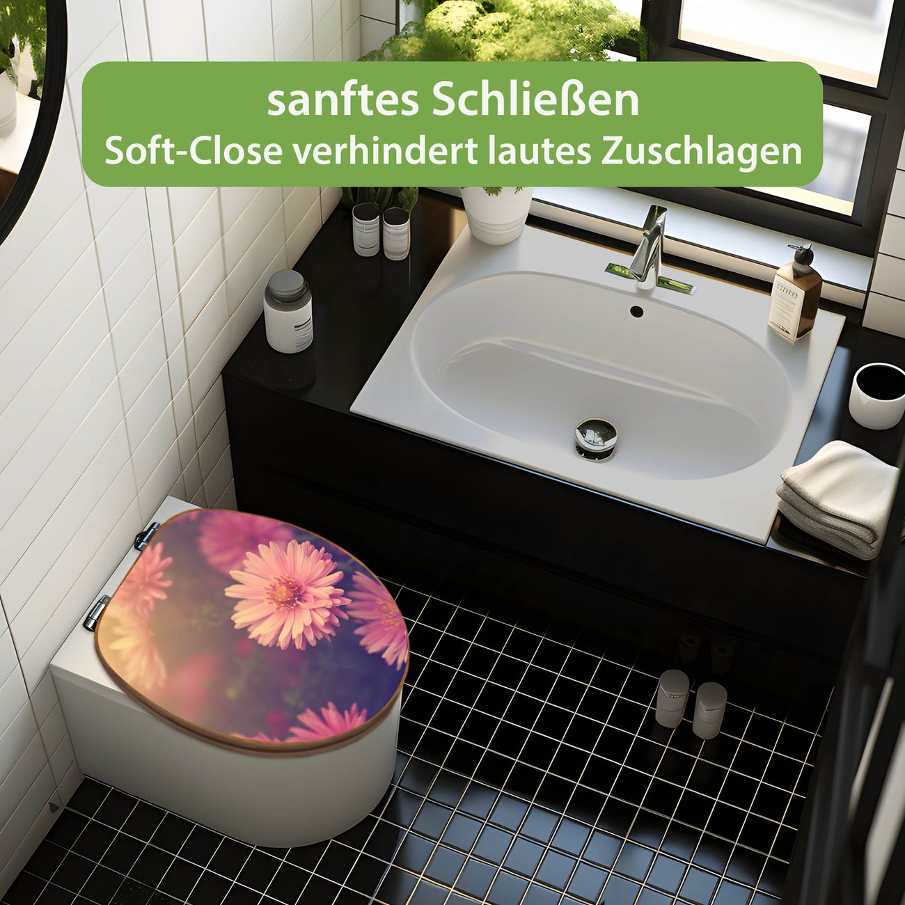 Design WC-Sitz Bambus Absenkautomatik Motiv Gerbera 2