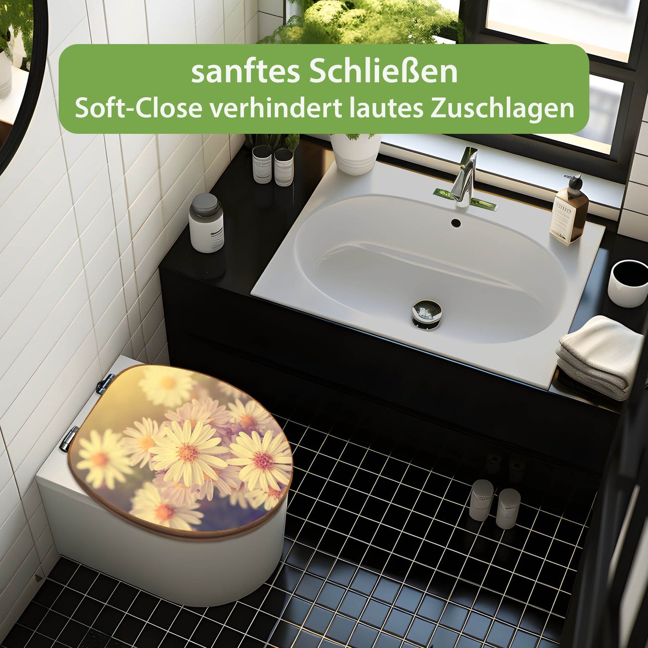 Design WC-Sitz Bambus Absenkautomatik Motiv Gerbera 3