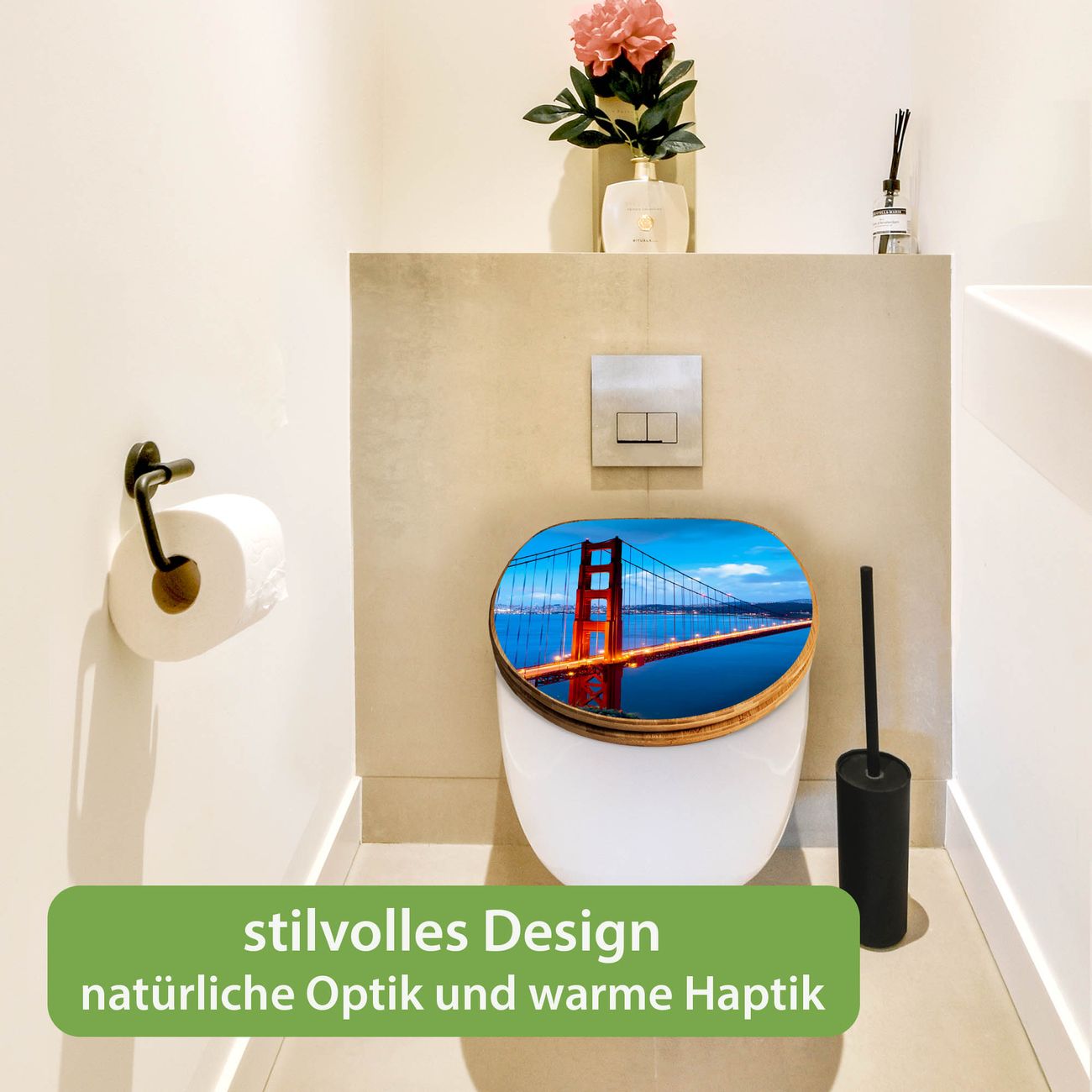 Design WC-Sitz Bambus Absenkautomatik Motiv Golden Gate Bridge
