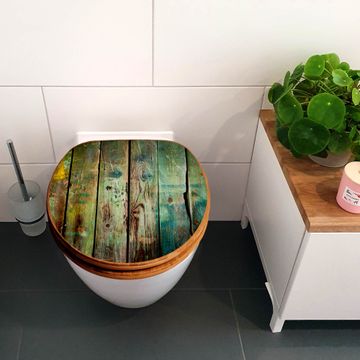 Mit dem banjado Toilettensitz in Bambus verbinden Sie Design und Funktionalität. Sie erhalten den WC-Sitz mit bewährter Holz Qualität und Universal Scharnieren. Das Motiv Motiv Grünes Holz besteht aus einer schutzlaminierten Motivfolie, die durch das Schutzlaminat zusätzlich vor Kratzern schützt. Durch diesen Motivdruck wird der WC-Sitz zu einem Blickfang in Ihrem Bad.