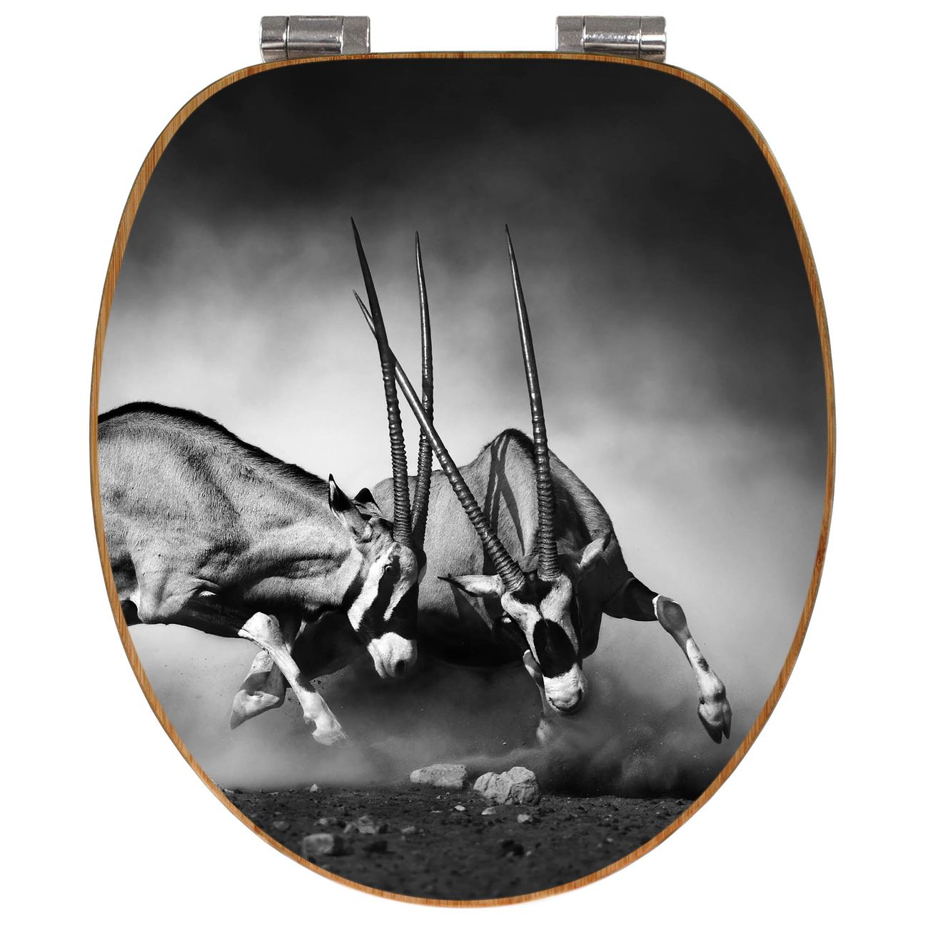 Mit dem banjado Toilettensitz in Bambus verbinden Sie Design und Funktionalität. Sie erhalten den WC-Sitz mit bewährter Holz Qualität und Universal Scharnieren. Das Motiv Motiv Head Crash besteht aus einer schutzlaminierten Motivfolie, die durch das Schutzlaminat zusätzlich vor Kratzern schützt. Durch diesen Motivdruck wird der WC-Sitz zu einem Blickfang in Ihrem Bad.