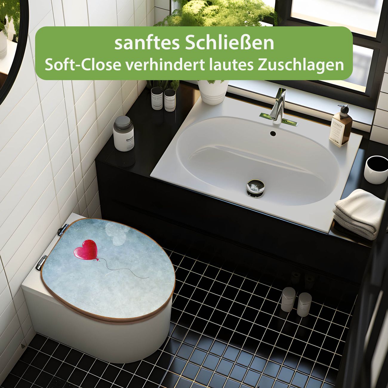 Design WC-Sitz Bambus Absenkautomatik Motiv Herzballon