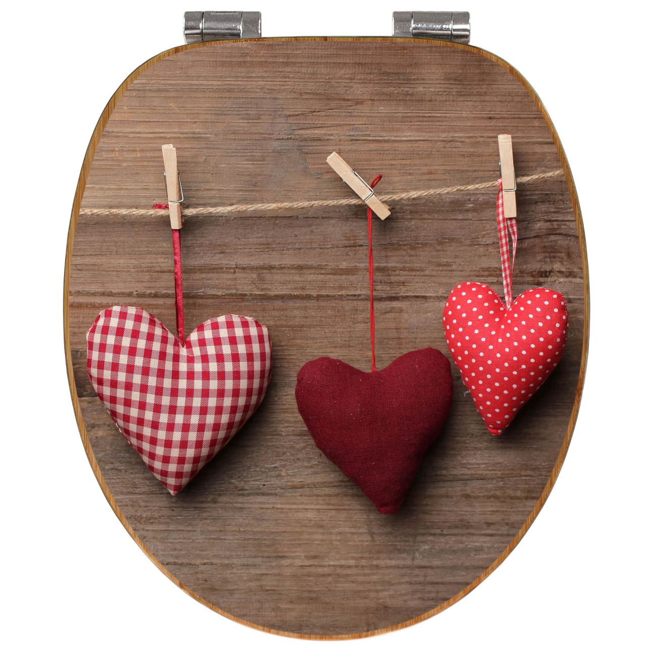 Mit dem banjado Toilettensitz in Bambus verbinden Sie Design und Funktionalität. Sie erhalten den WC-Sitz mit bewährter Holz Qualität und Universal Scharnieren. Das Motiv Motiv Herzen besteht aus einer schutzlaminierten Motivfolie, die durch das Schutzlaminat zusätzlich vor Kratzern schützt. Durch diesen Motivdruck wird der WC-Sitz zu einem Blickfang in Ihrem Bad.