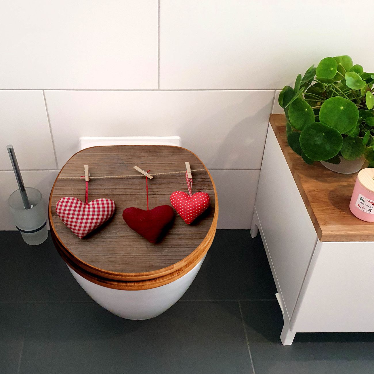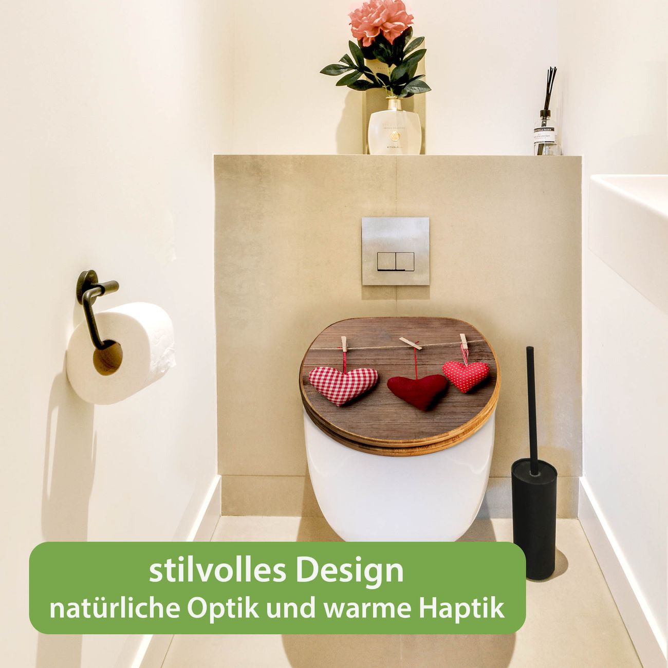 Design WC-Sitz Bambus Absenkautomatik Motiv Herzen