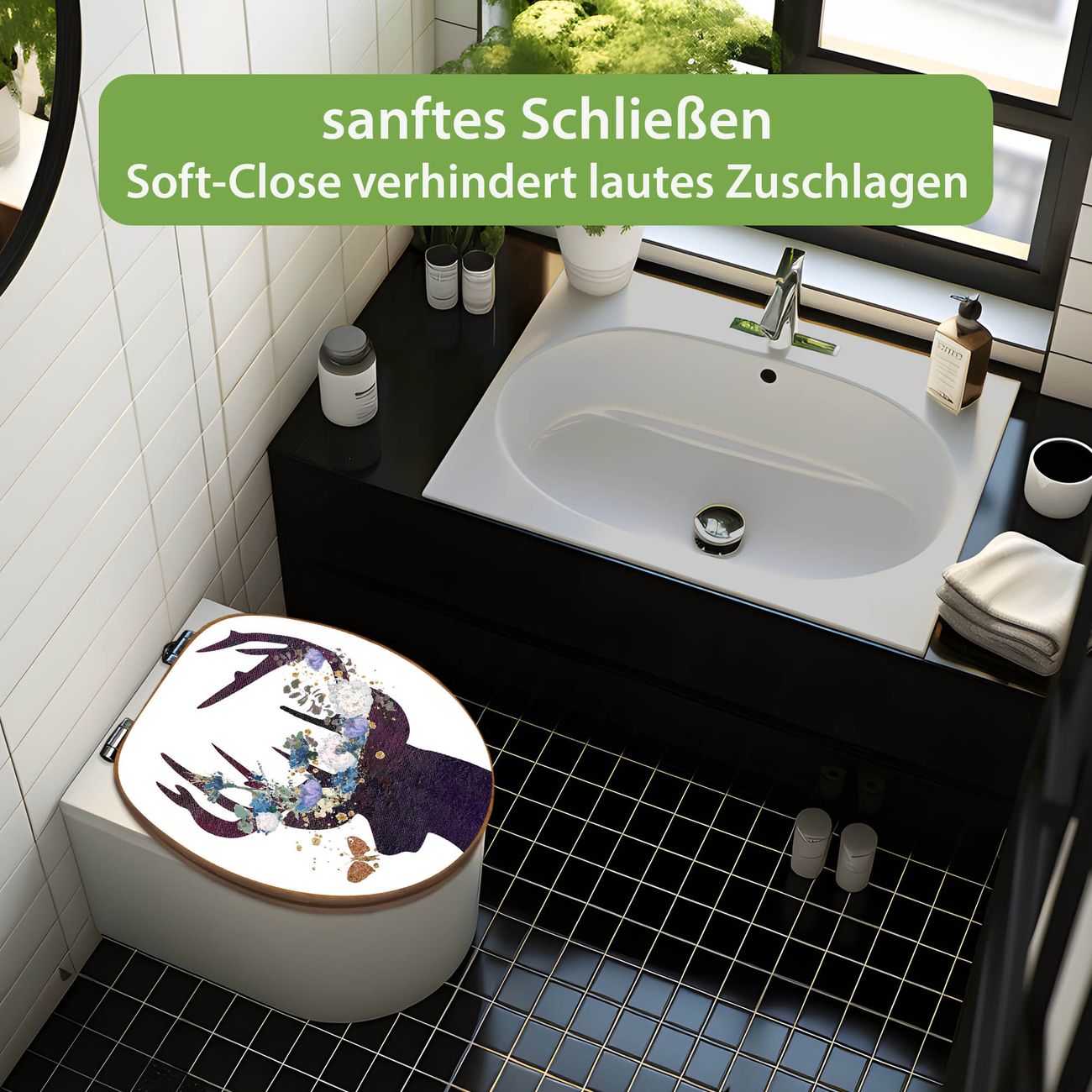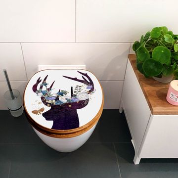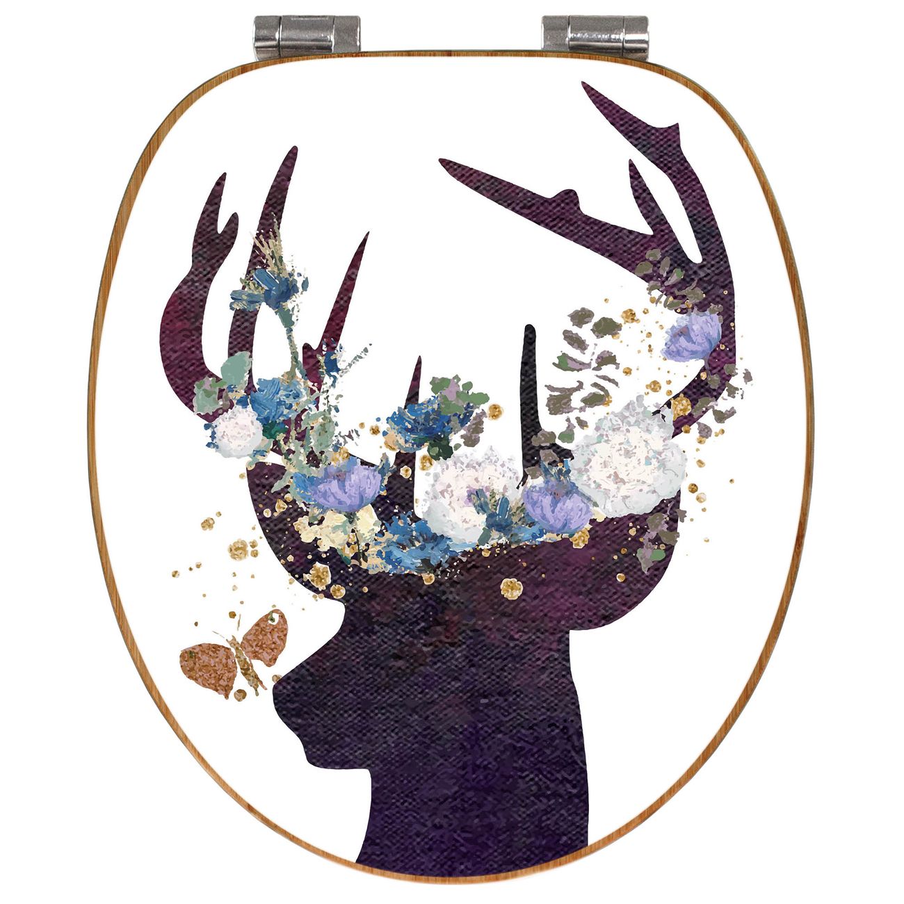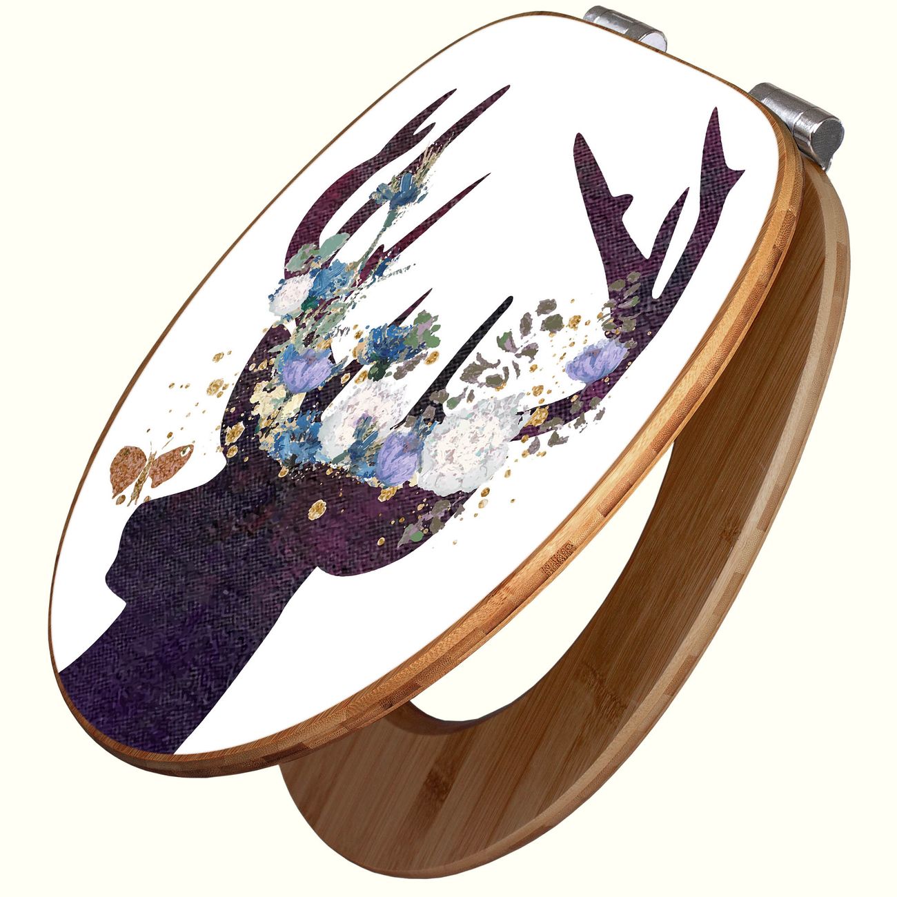 Design WC-Sitz Bambus Absenkautomatik Motiv Hirsch Blumengeweih